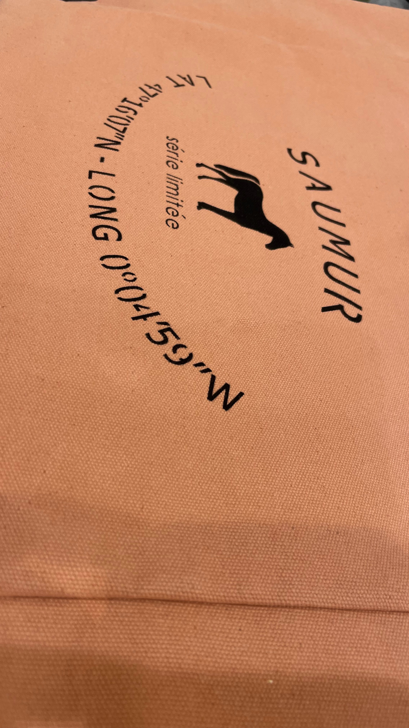 Très beau sac en tissu avec anses en cuir et coton enduit à l'intérieur.