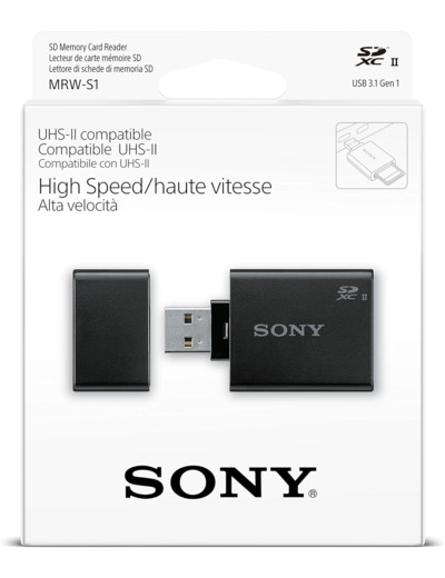 Sony MRWS1 - Le lecteur de carte mémoire MRW-S1 -permet la lecture optimisée des cartes SD UHS-II. Sa vitesse de transfert ultra-rapide vous permet de profiter au maximum de vos cartes haut débit. Il vous permet également de profiter au maximum des performances des cartes mémoire SD UHS-I et non-UHS. CONTENU DU COFFRET Lecteur de carte + capuchon
