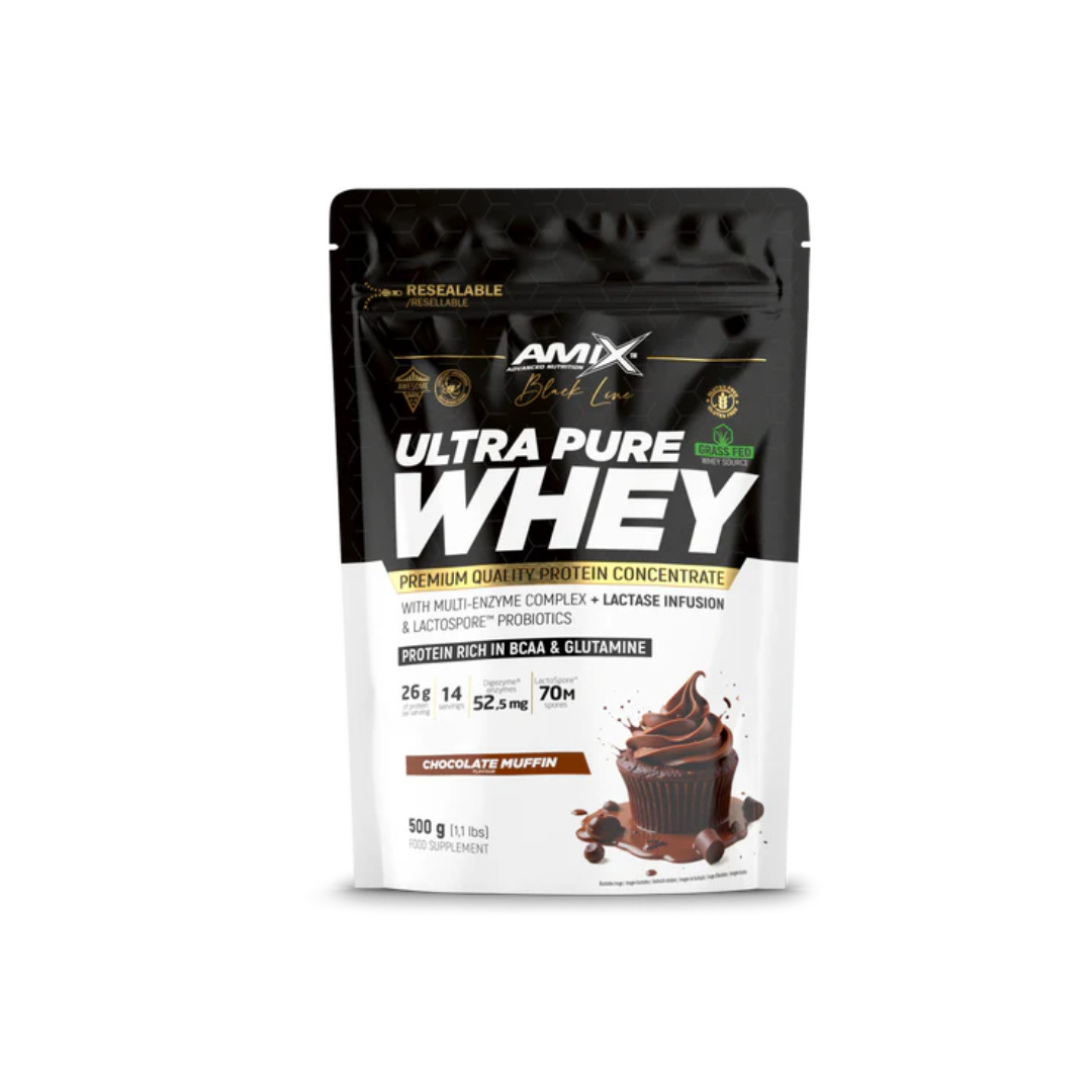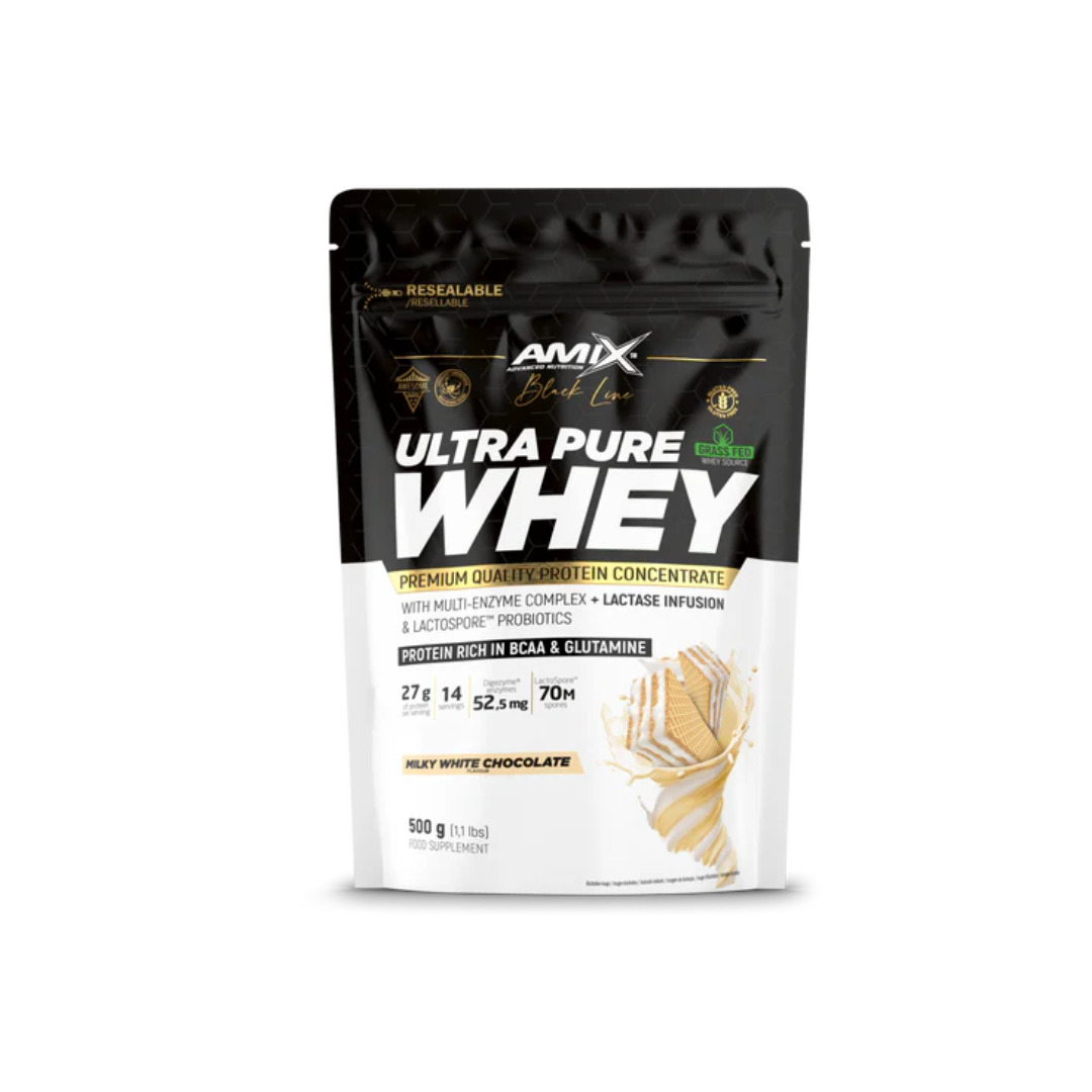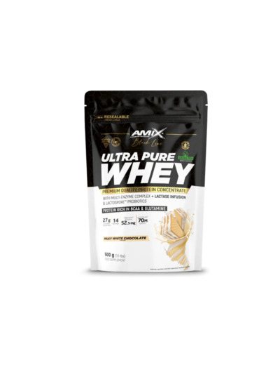 Amix Ultra Pure Whey Black Line est un complĂ©ment alimentaire protĂ©ique premium basĂ© sur un concentrĂ© de protĂ©ines sĂ©riques de haute qualitĂ©. Conçue pour les personnes actives souhaitant structurer leurs apports en protĂ©ines, cette formule fournit un profil complet dâacides aminĂ©s avec une teneur en protĂ©ines dâenviron 75 % sur base sĂšche.