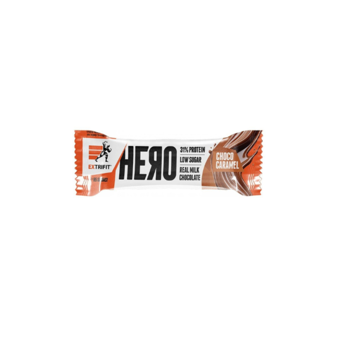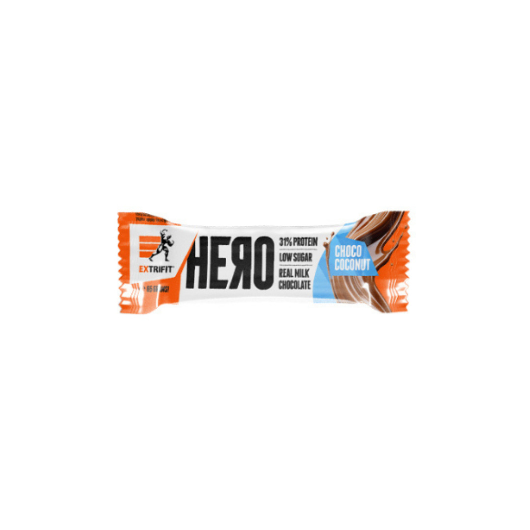 Extrifit Hero Protein Bar est une barre protéinée conçue pour les personnes actives, les sportifs et tous ceux qui recherchent une collation savoureuse, nutritive et pratique. Grâce à une teneur en protéines élevée (~31 %), chaque barre apporte environ 20 g de protéines, issues d’un mélange de protéines de lait et de soja, pour compléter l’apport protéique quotidien dans le cadre d’une alimentation équilibrée.