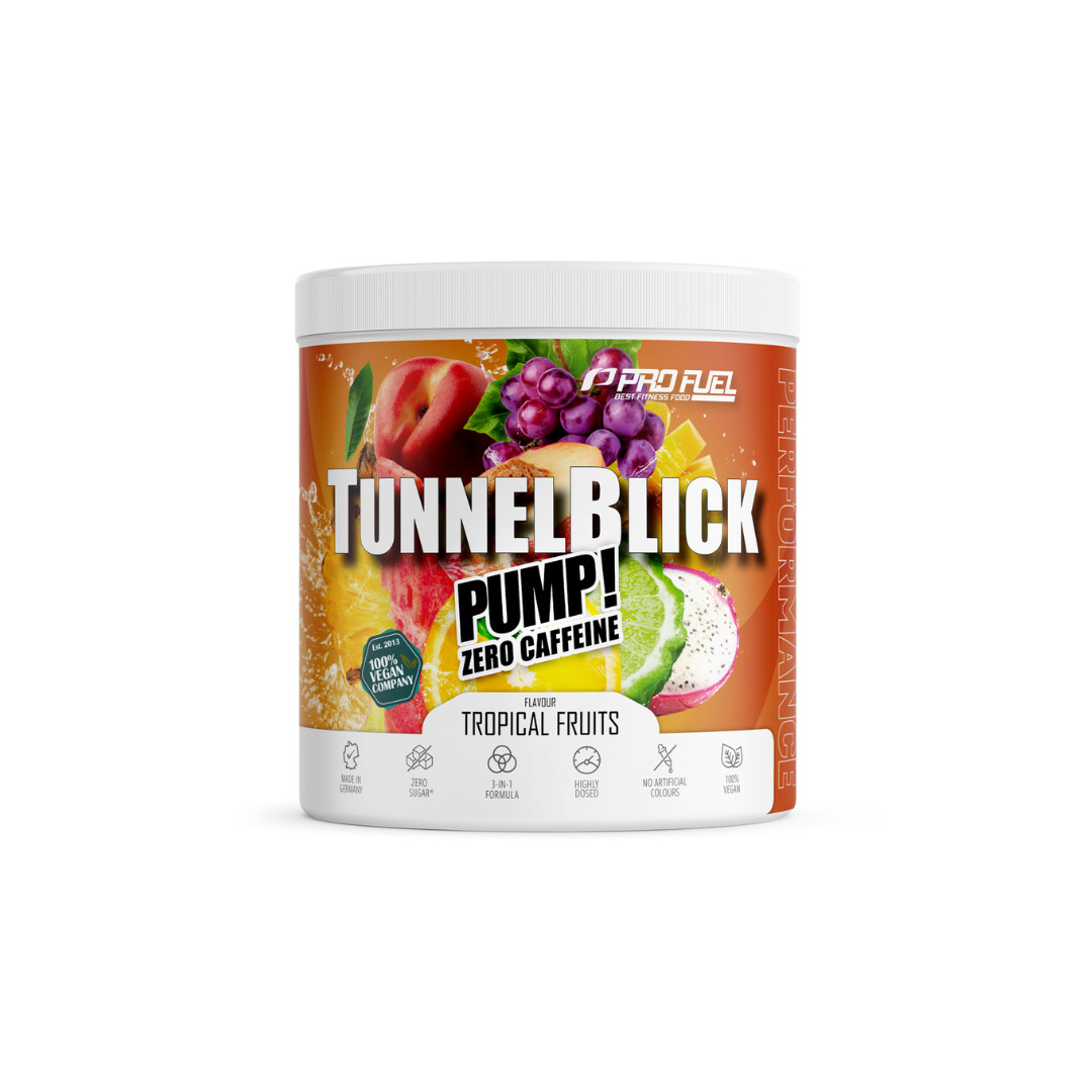 Le pré-entraînement ProFuel Tunnelblick Pump! Ice Tea Peach est un complément alimentaire avant l’effort conçu pour les sportifs qui souhaitent préparer leurs muscles à l’entraînement sans caféine ni stimulants classiques. Sa formule se concentre sur des nutriments ciblés, reconnus pour leurs rôles dans le métabolisme énergétique et le soutien des fonctions musculaires lors de l’effort physique.
