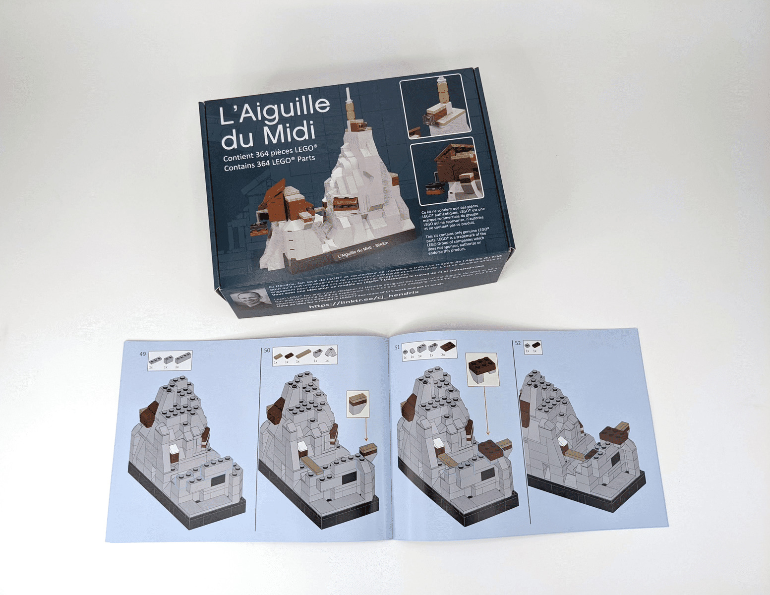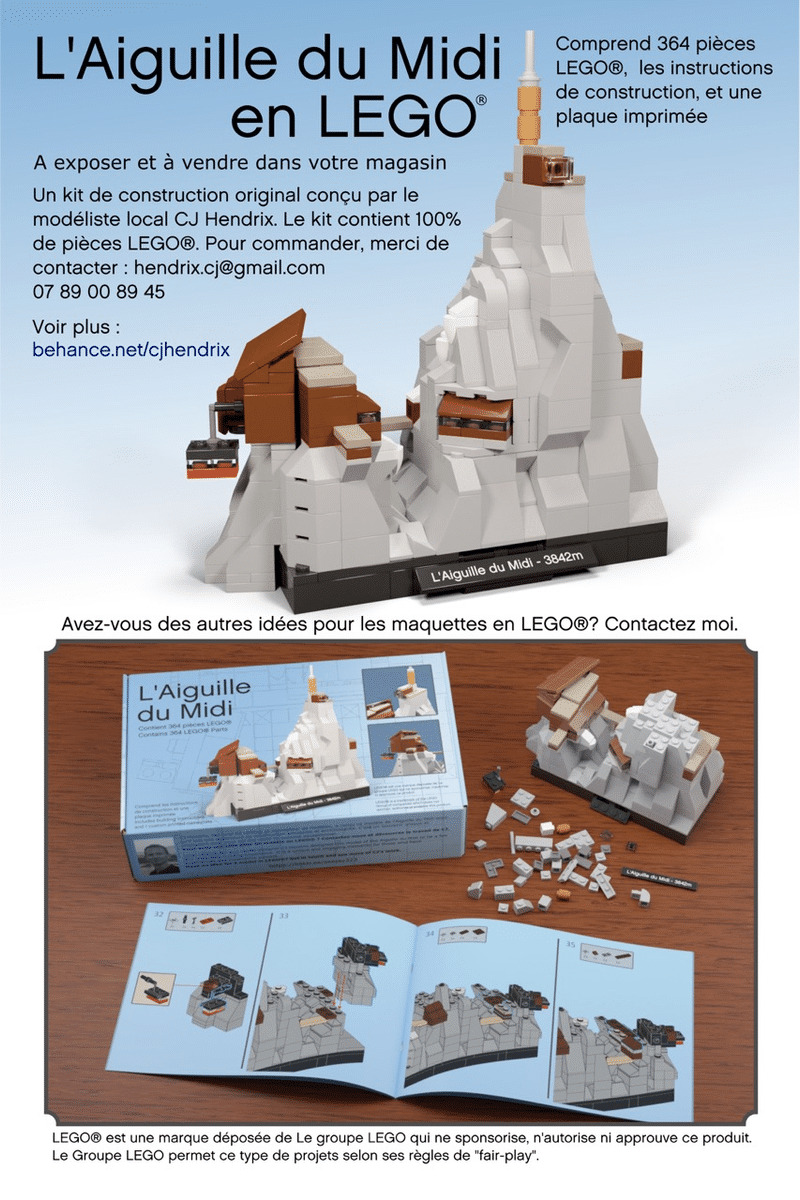 l’aiguille du Midi en Lego. Kit de construction original conçu par le modéliste local CJ Hendrix.