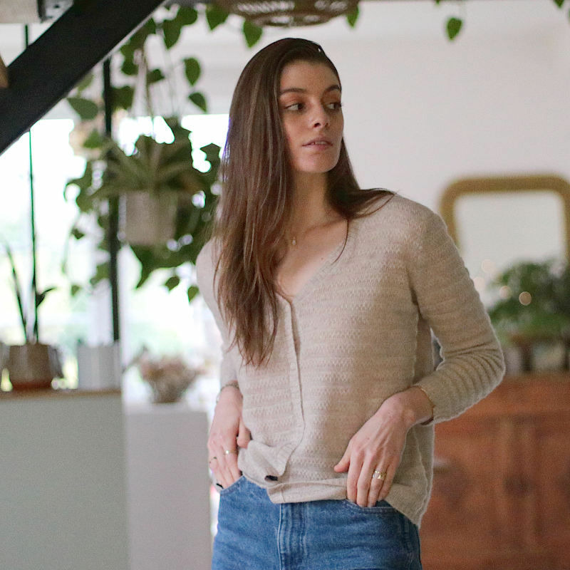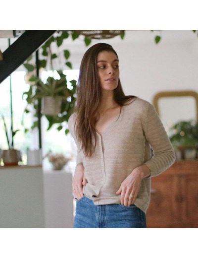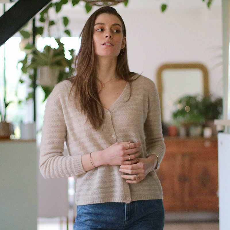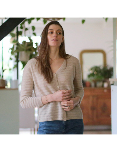 Un certain esprit vintage dans ce cardigan en cachemire : une coupe ample, une maille retournée très travaillée et des tonalités chaudes typiques des fifties. Notre conseil : porter le 1er bouton détaché (voir modèle Framboise).