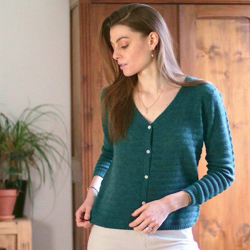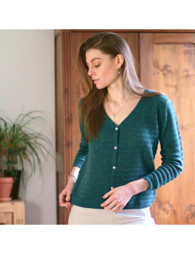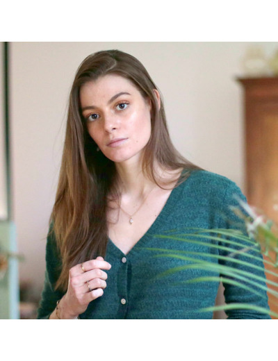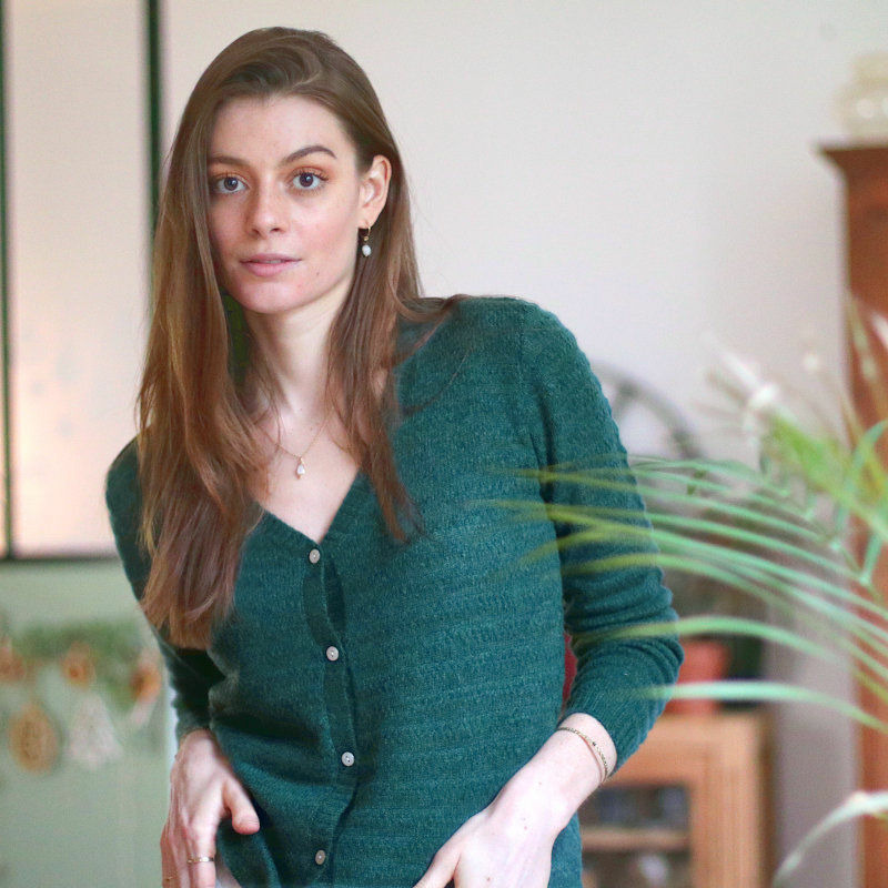 Un certain esprit vintage dans ce cardigan en cachemire : une coupe ample, une maille retournée très travaillée et des tonalités chaudes typiques des fifties. Notre conseil : porter le 1er bouton détaché (voir modèle Framboise).