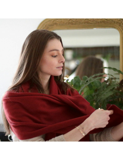 Carmin : une jolie couleur automnale qui réchauffera votre teint, à la croisée d'un rouge chaud, d'un corail et d'un brun. Cette écharpe unisexe s'associera aussi facilement avec des tons clairs (beige, blanc, camel, ...) que des teintes plus foncées comme l'anthracite, le marron ou le bleu marine, par exemple.