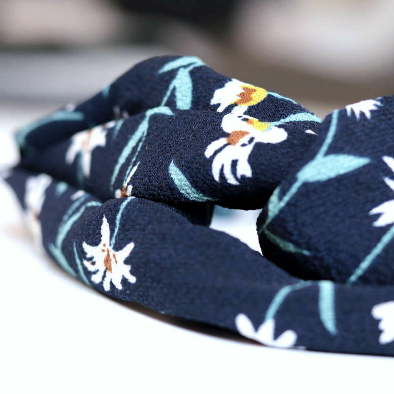 Lou est une série de headbands floraux déclinés dans une crêpe fine et ultra texturée.
