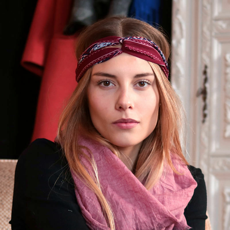 Nahuatl est une série de headbands inspirés de l'art graphique Maya et déclinés dans une crêpe fine et ultra texturée, pour un look boho très actuel.