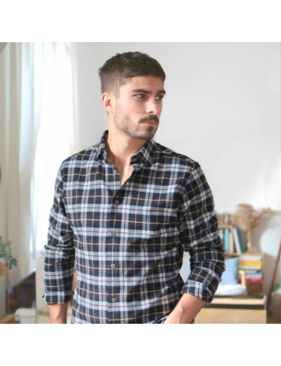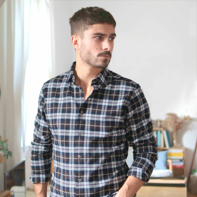Aux antipodes de la chemise en flanelle habituelle d'inspiration américaine (boutons au travers du col, épaisses coutures frontales, ...), nous avons imaginé un design épuré et élégant reprenant tous les codes de la chemise à la française.