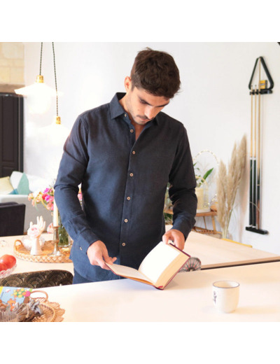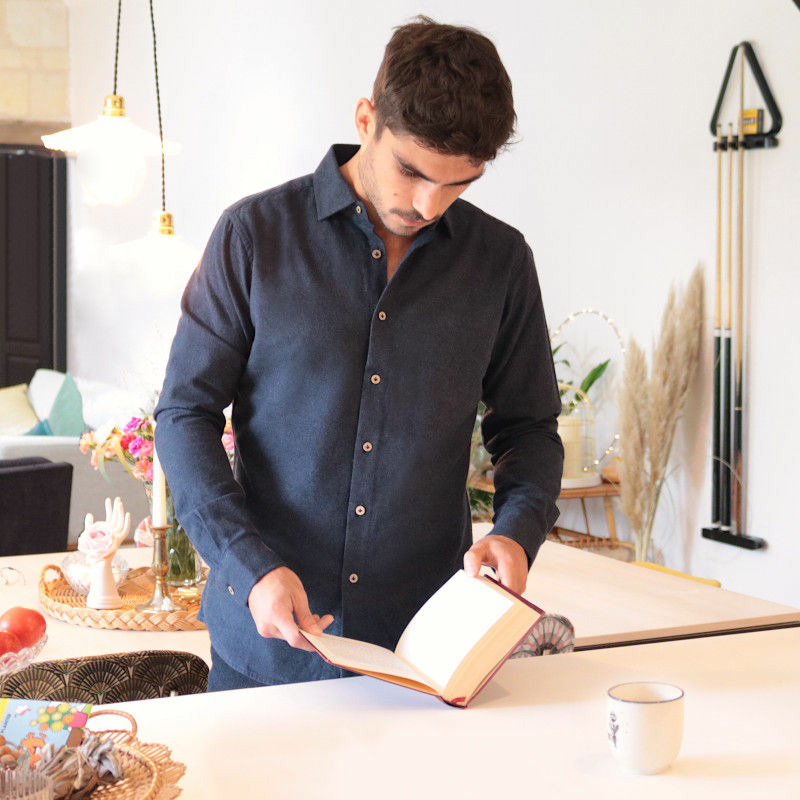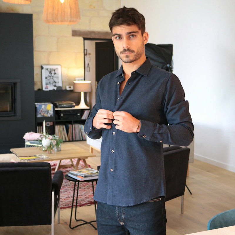 Aux antipodes de la chemise en flanelle habituelle d'inspiration américaine (col à boutons, épaisses coutures frontales), nous avons choisi de rendre ses lettres de noblesse à cette magnifique étoffe en lui offrant tous les codes de la chemise élégante à la française. Une pièce épurée et efficace, qui laisse enfin s’exprimer ce remarquable tissu, lumineux et plein de reflets chinés.