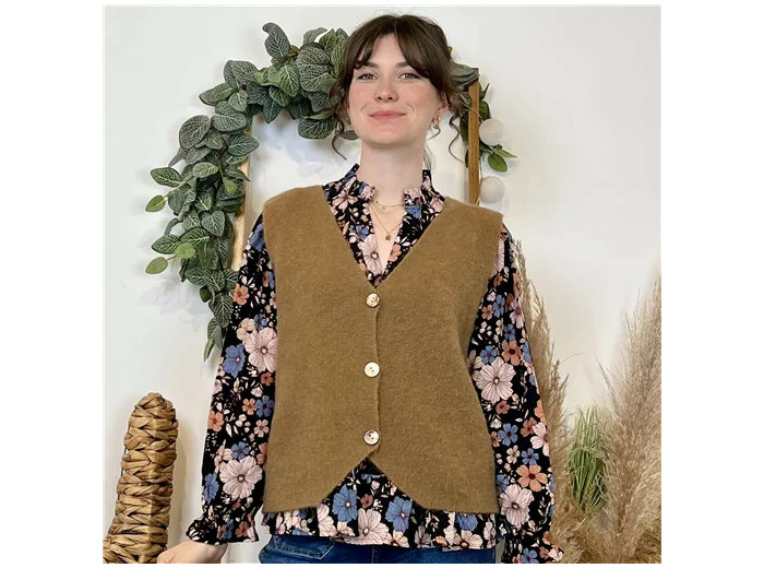 K043- Gilet sans manche en maille (Tu) (camel)