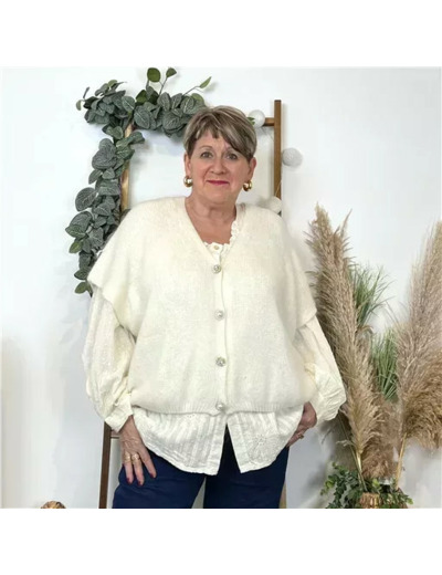 Z083- Gilet boutons fantaisies (Gu) (ecru)