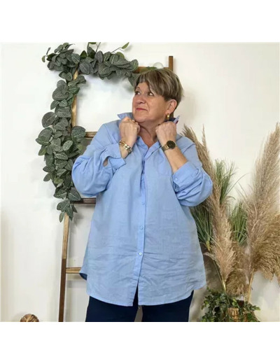 Z760-Chemisier uni Lin/coton (T44-T52) (bleu ciel)