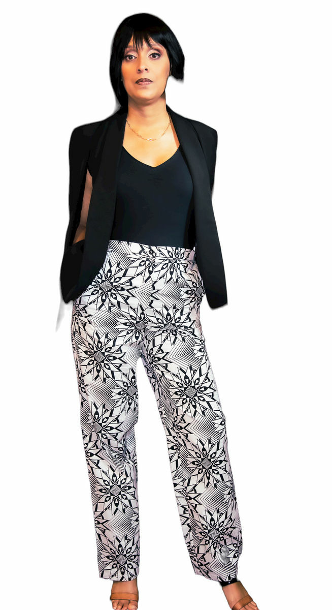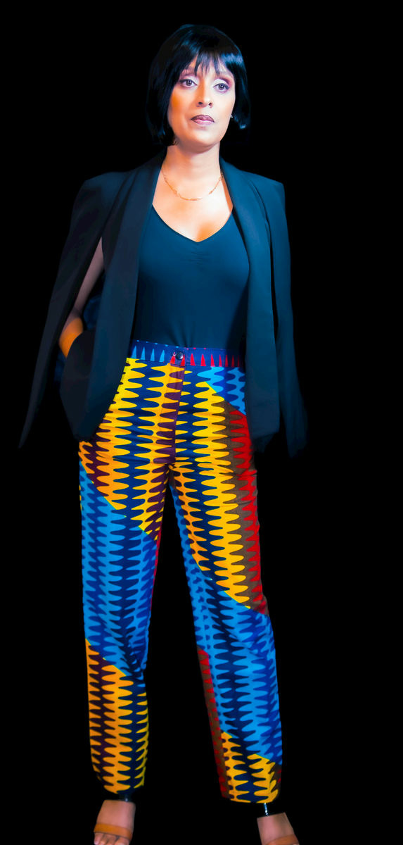 Pour un rendu classe, accompagnez votre pantalon en wax à une tenue noire, afin de mettre en avant votre confection (le noir, une valeur sûre !)