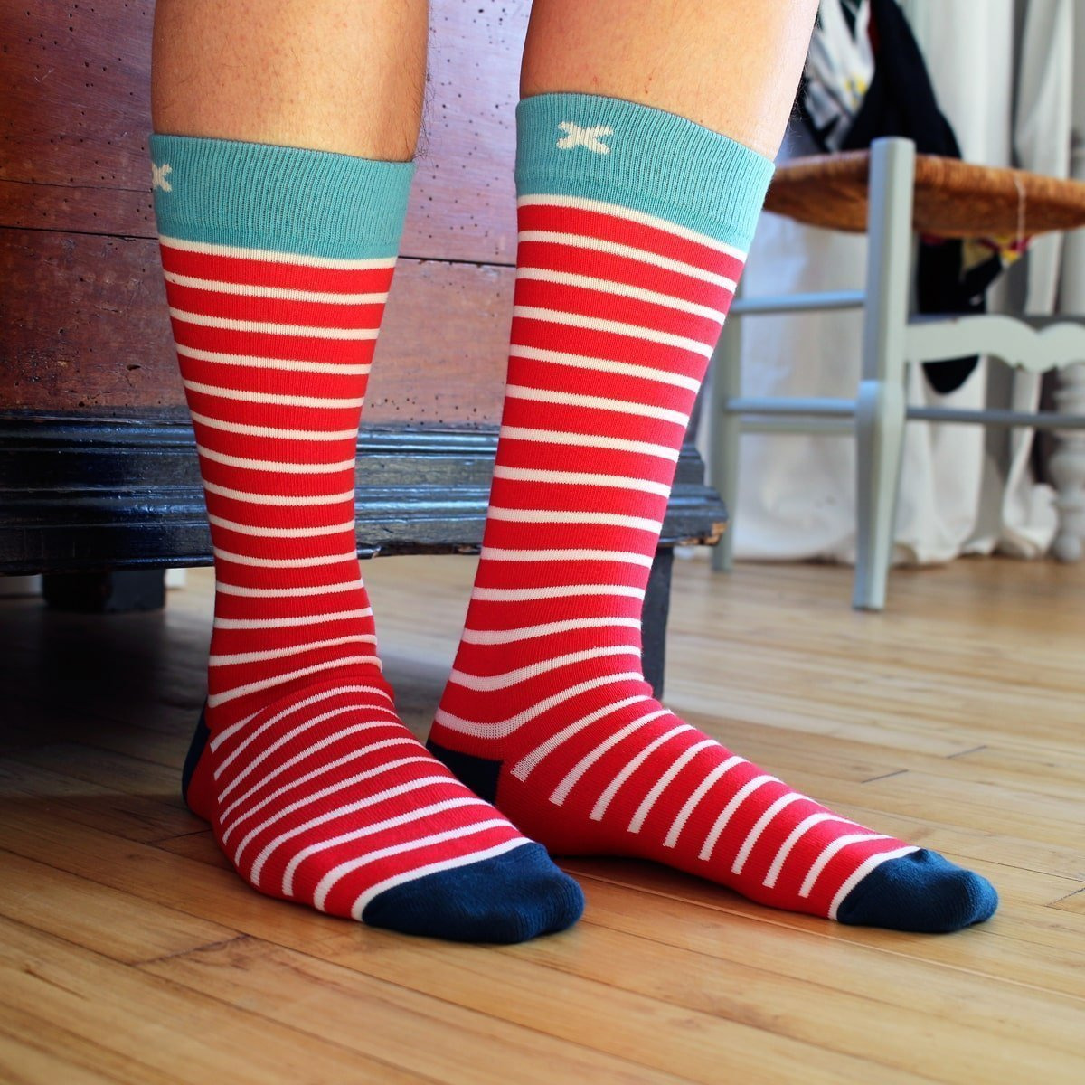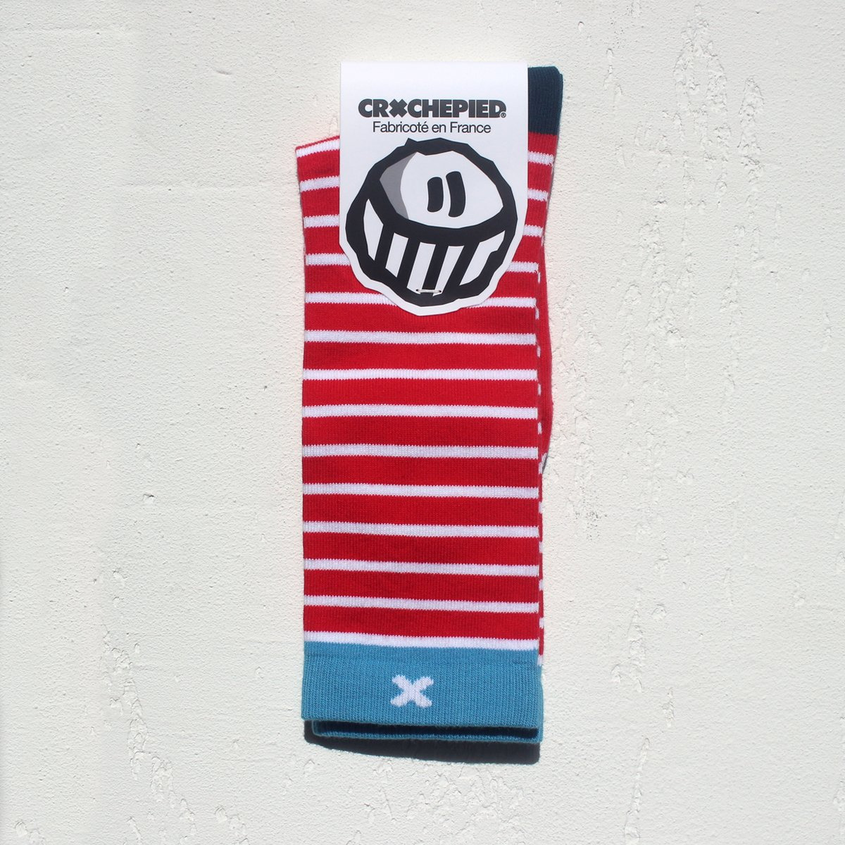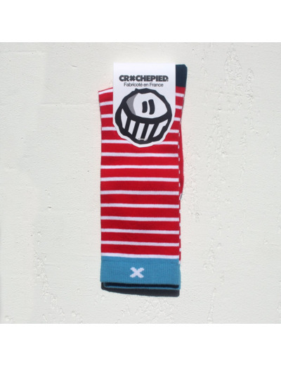 Les chaussettes Crochepied Thor Boyaux allient style et confort avec une touche résolument audacieuse. Fabriquées à Limoges avec un design original conçu à Doué-en-Anjou, elles affichent des rayures rouges et blanches intemporelles, sublimées par une finition en bleu marine et une bordure turquoise ornée du logo Crochepied. Un design qui évoque un esprit marin et espiègle, rappelant le style emblématique de "Où est Charlie ?"