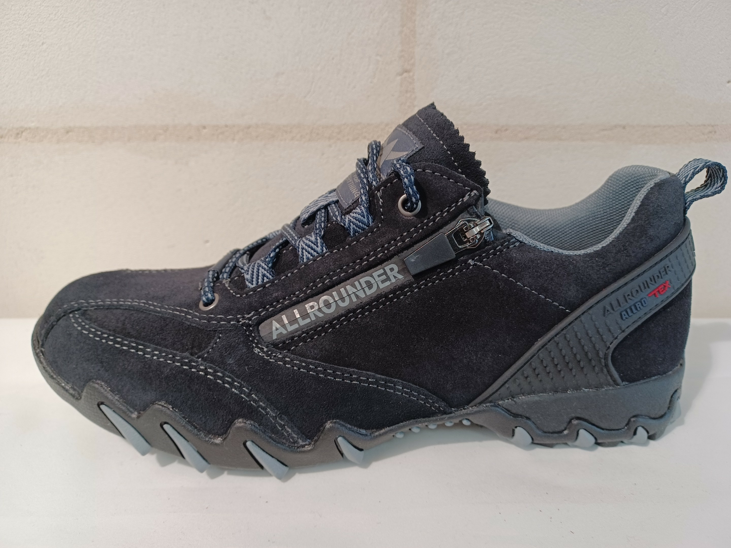 Modèle NIZAR-TEX de la marque ALLROUNDER : Avec cette chaussure vous surmonterez les défis du quotidien. Cette chaussure pour femme dans un beau bleu foncé se distingue surtout par son design moderne et la qualité de sa matière en velours.