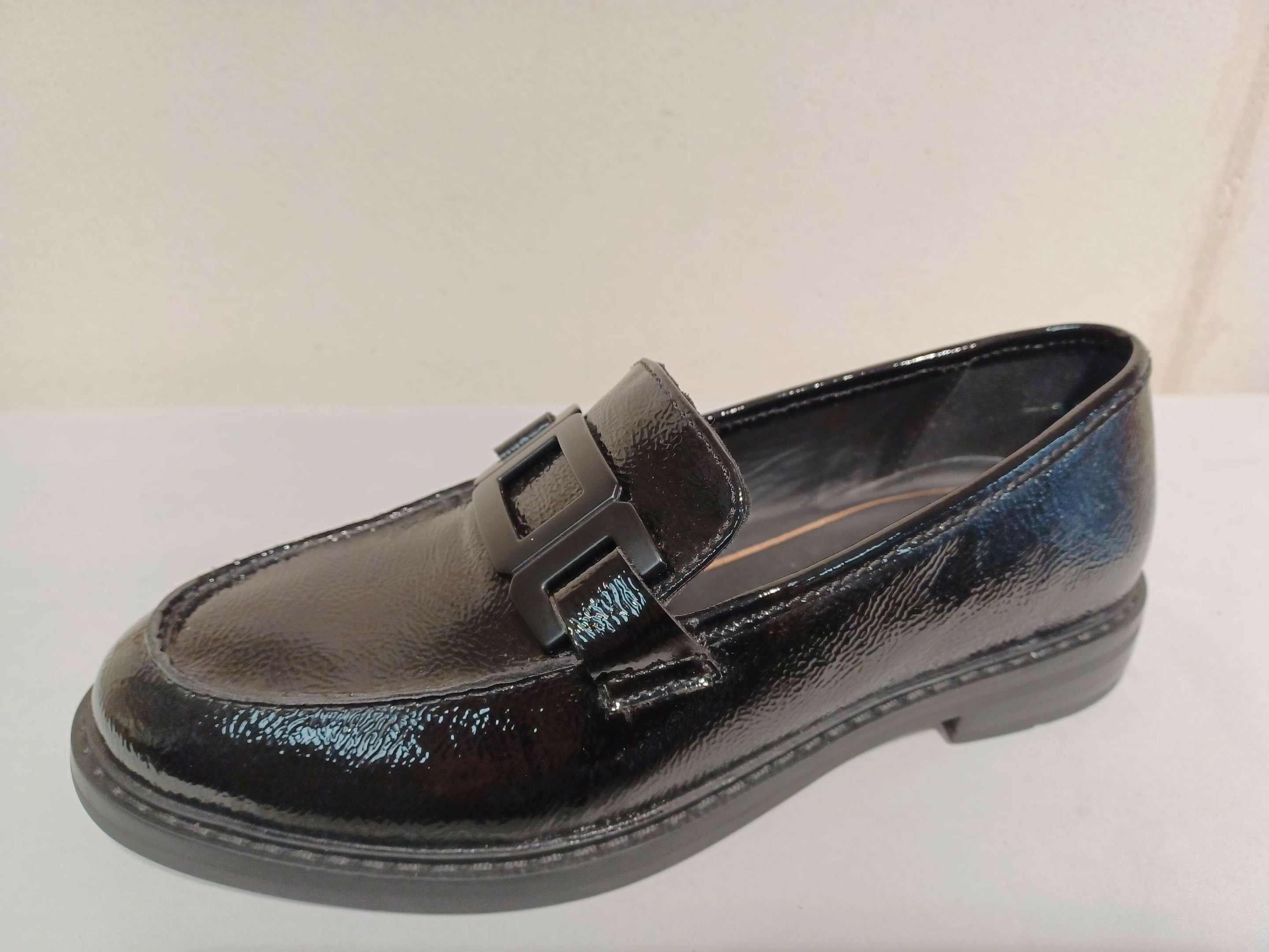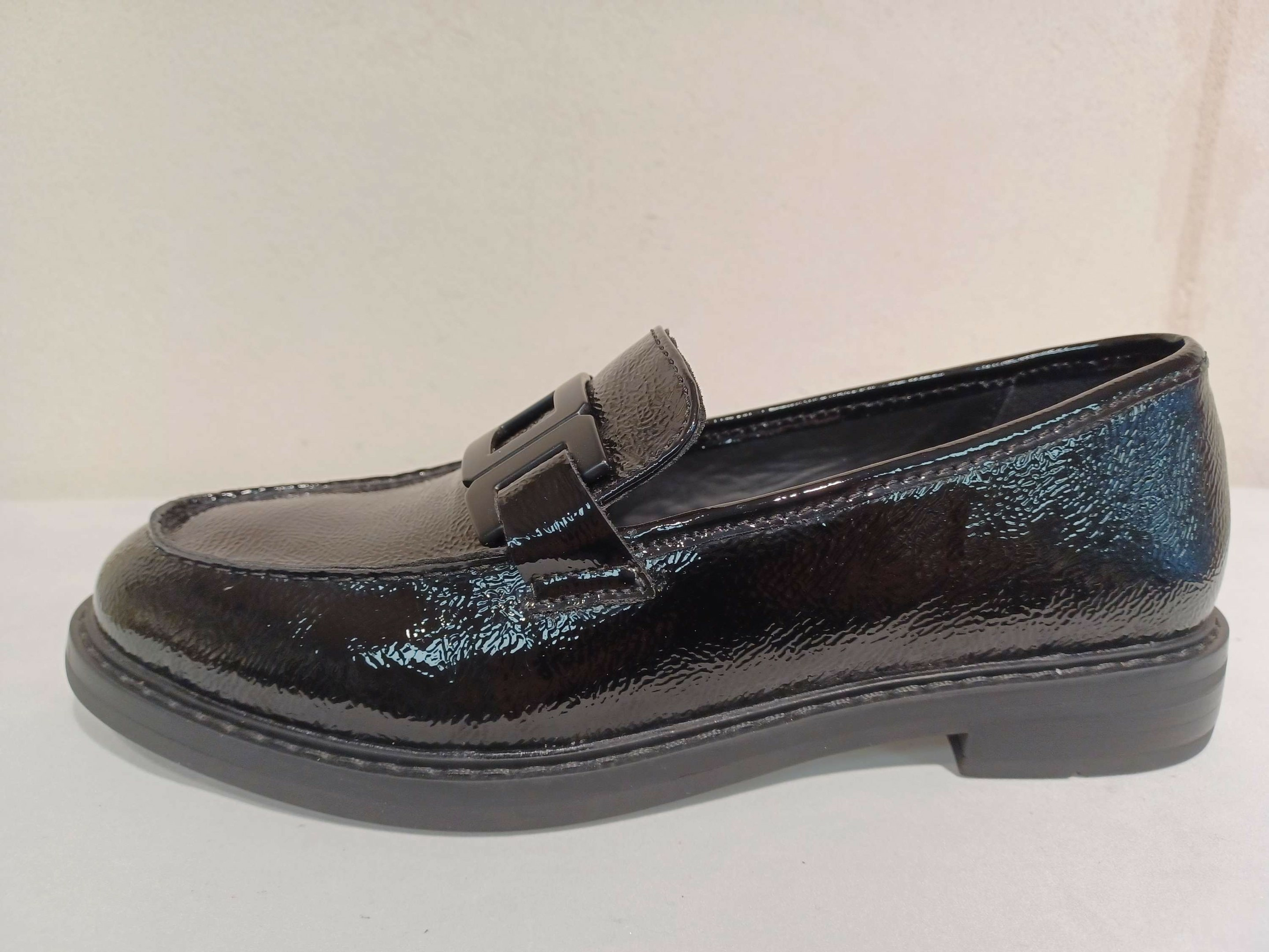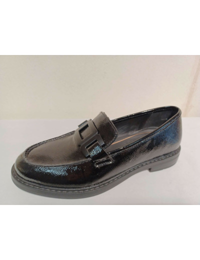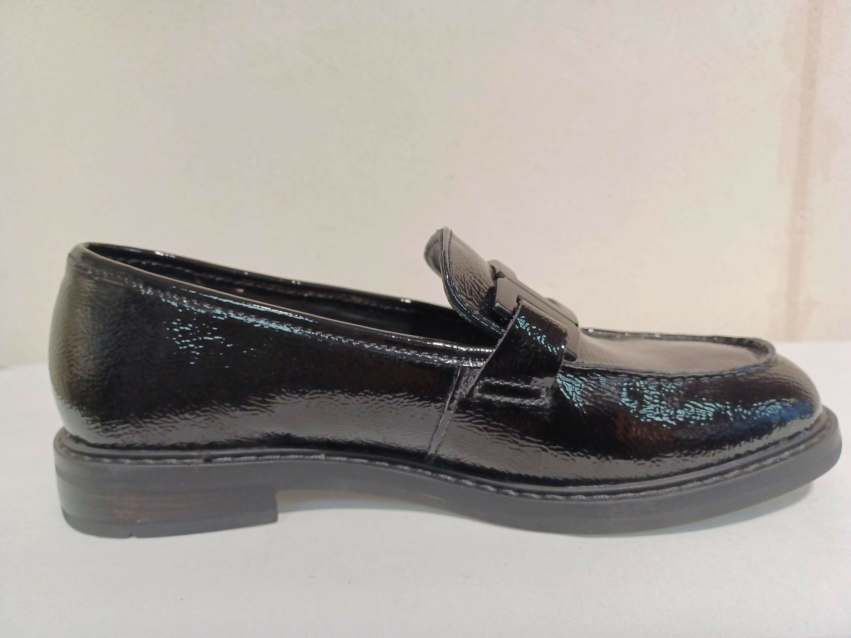 Mocassins en cuir vernis noir ultra souple avec boucle de chez Ara.