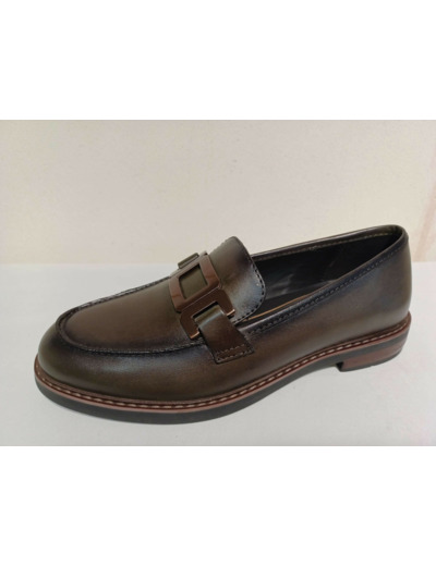 Mocassins en cuir kaki avec boucle cuivrée de chez Ara.