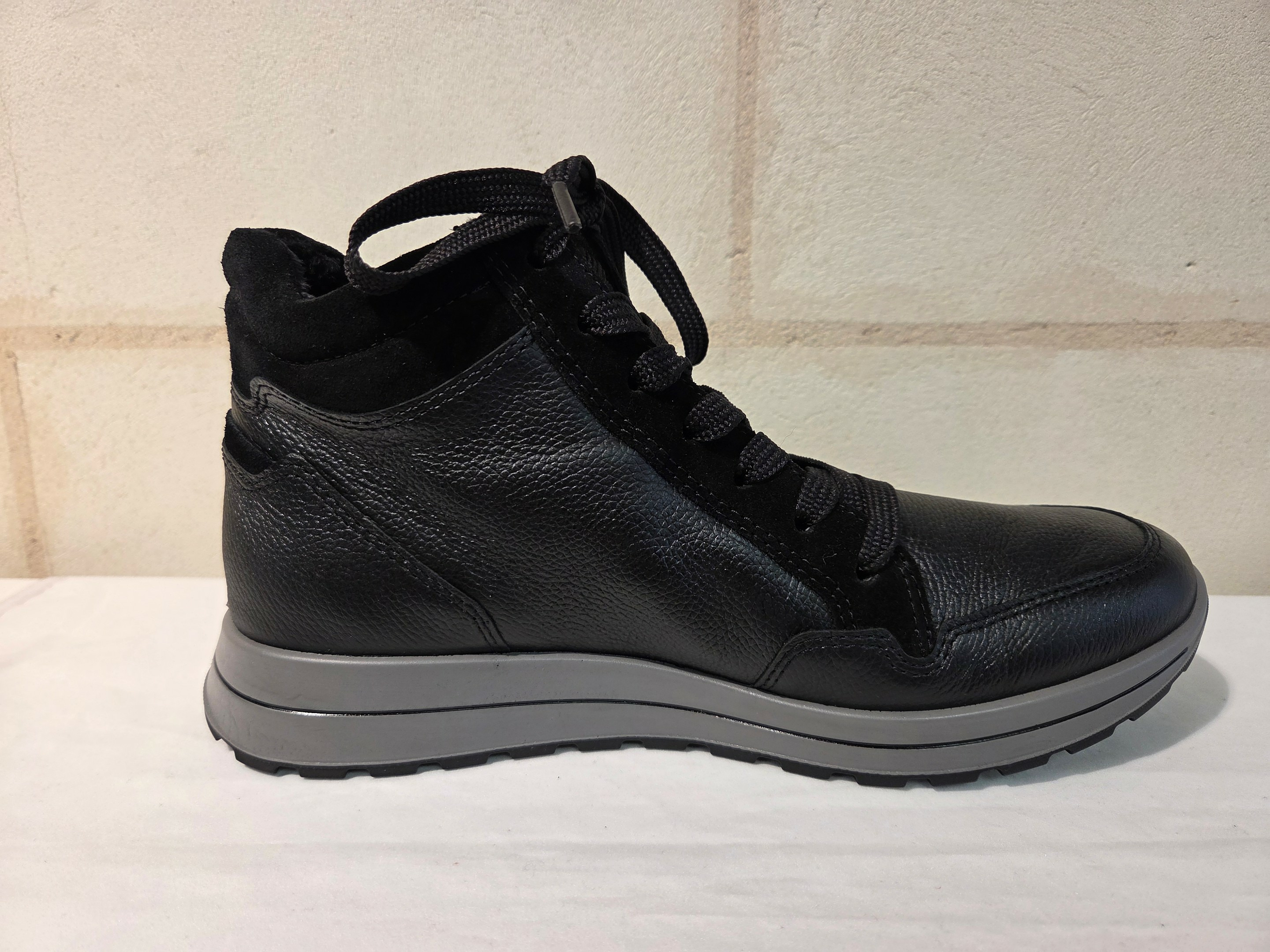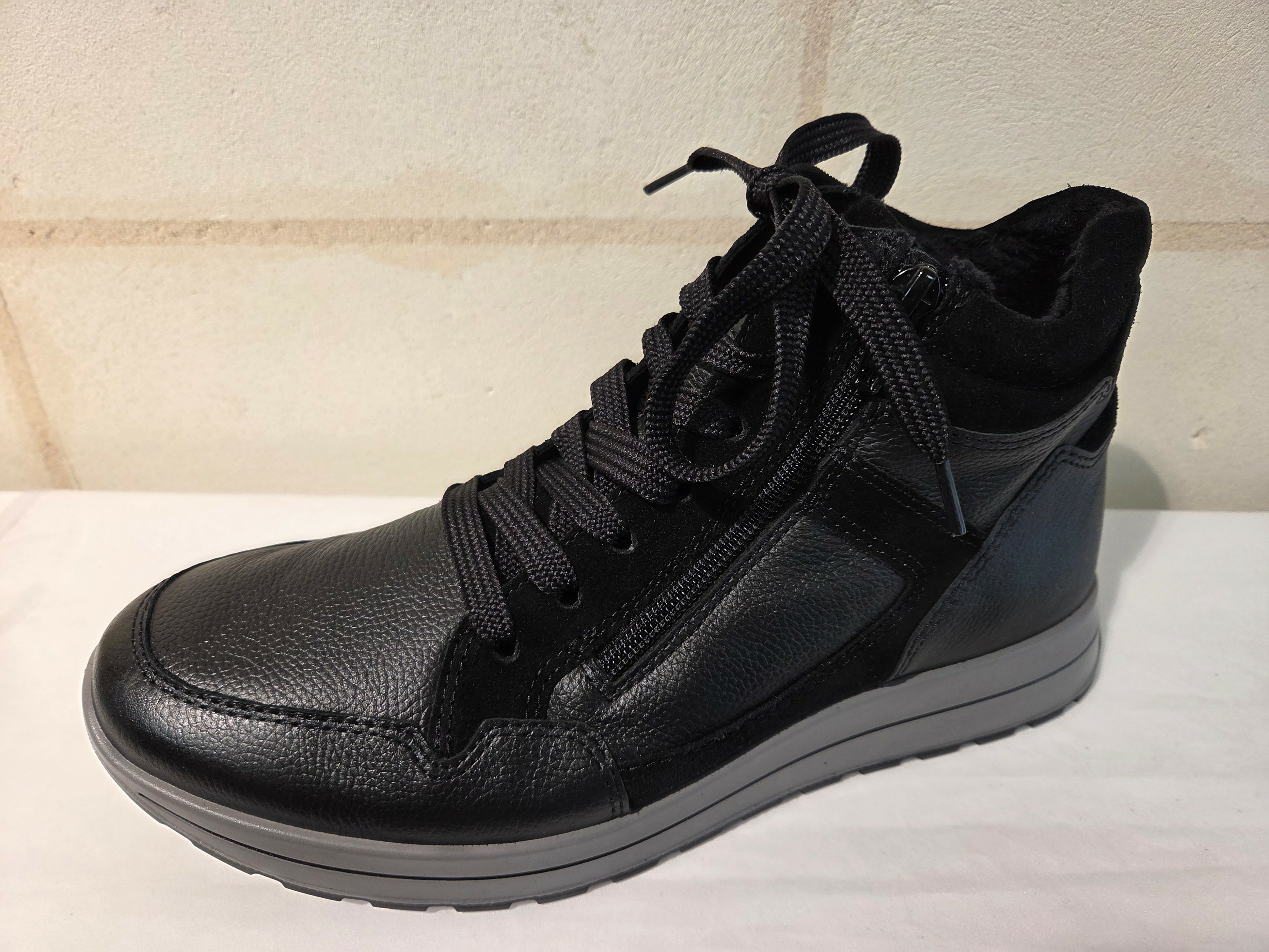 Caractéristiques: Semelle amovible Couleur: noir Doublure: Doublure chaude en textile Fermoir: Lacets Forme: un peu plus large Hauteur de la tige: 12 cm Hauteur du talon: 3,0 cm Largeur: H= large Ligne de produits: High Soft Matériau: cuir Semelle: Semelle intérieure textile, interchangeable| Marque | ara |