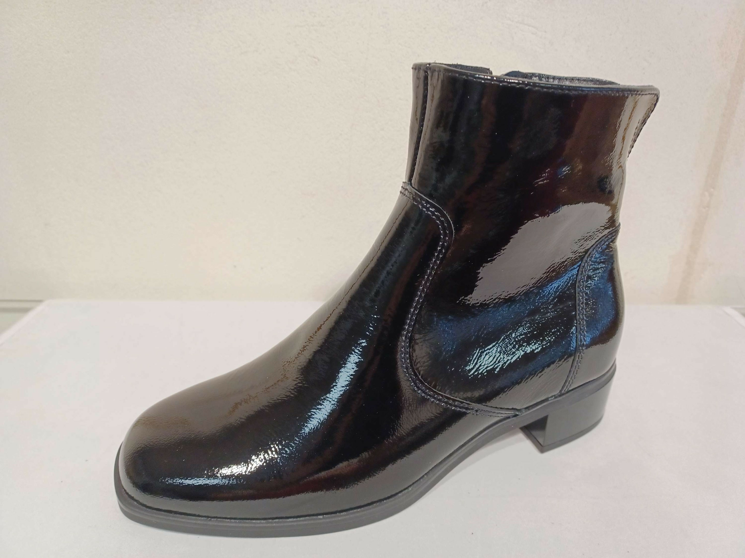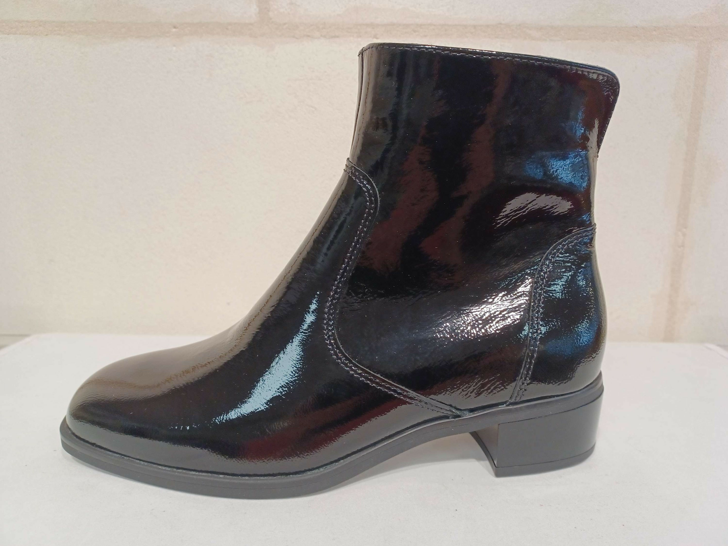 Boots en cuir vernis noir ultra souple de chez Ara.