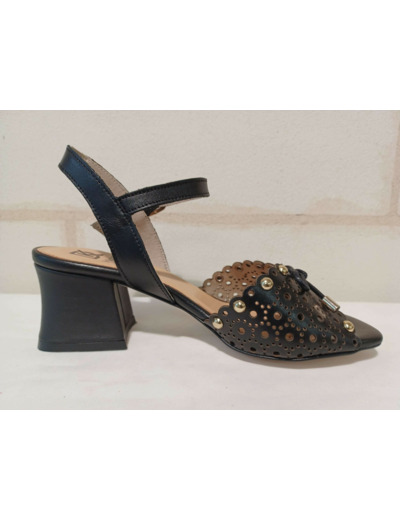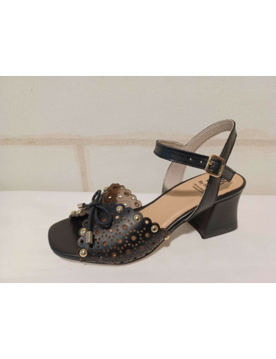 Sandale talon en cuir noir et fantaisie doré avec noeud de chez Dorking.