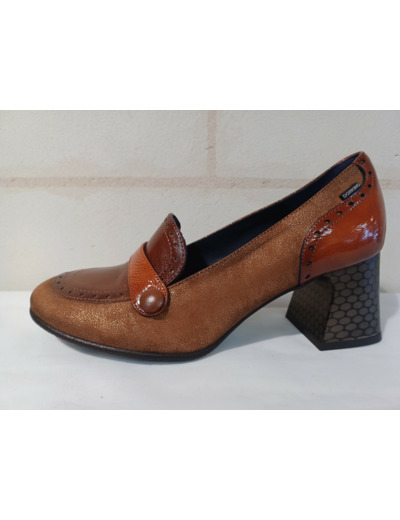 Mocassin en cuir fantaisie camel cognac de chez Dorking.