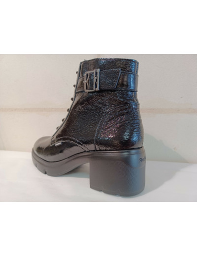Boots en cuir vernis noir ultra légères de chez Fluchos.