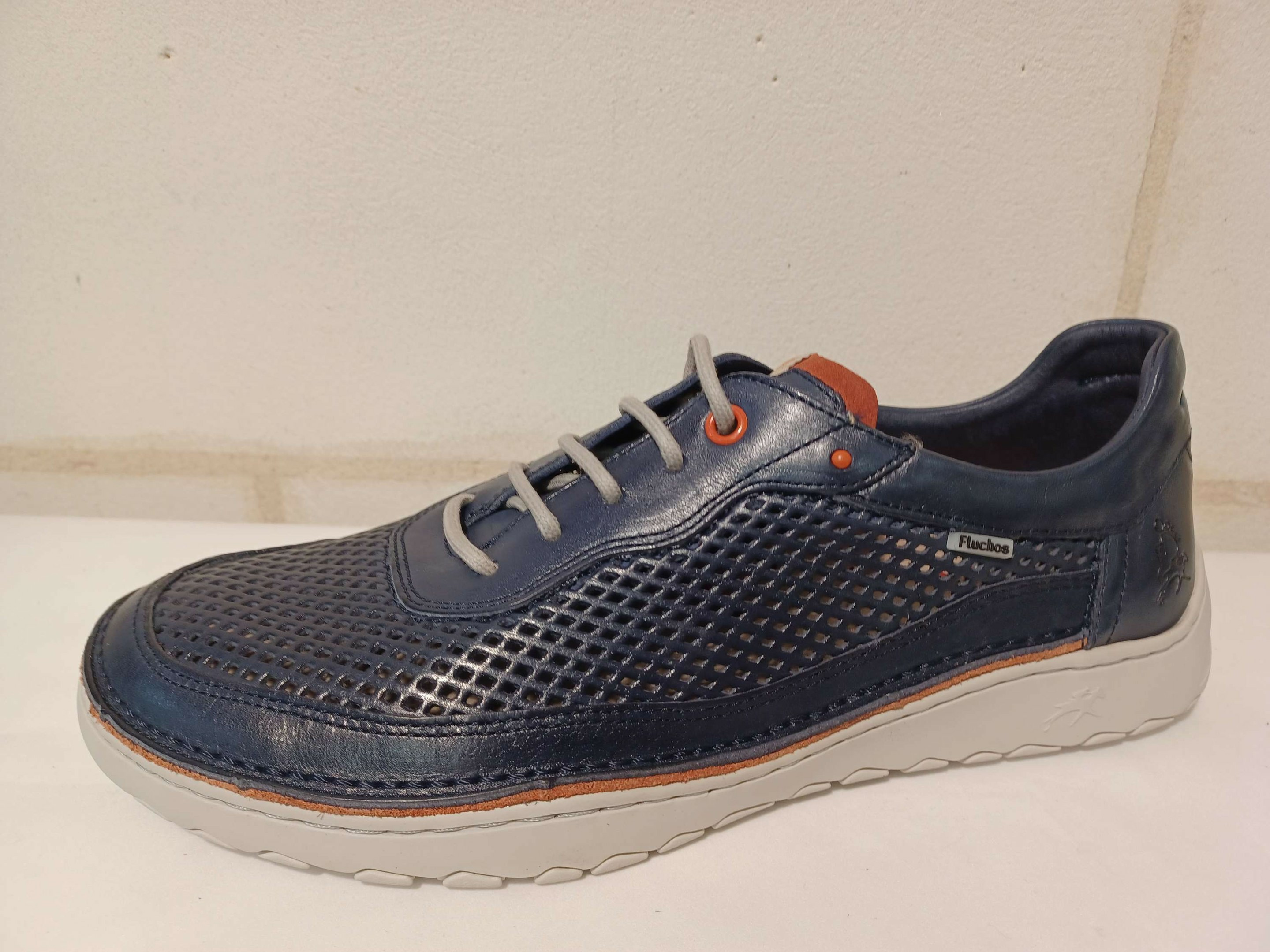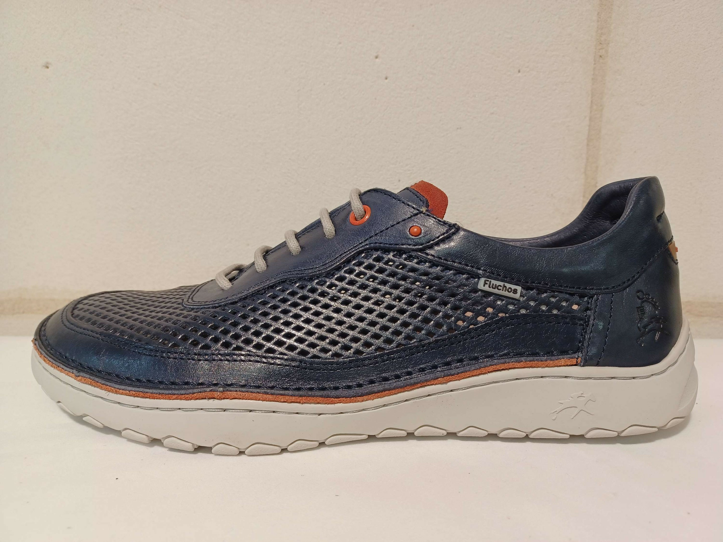 Baskets en cuir léger et respirant marine de chez Fluchos.