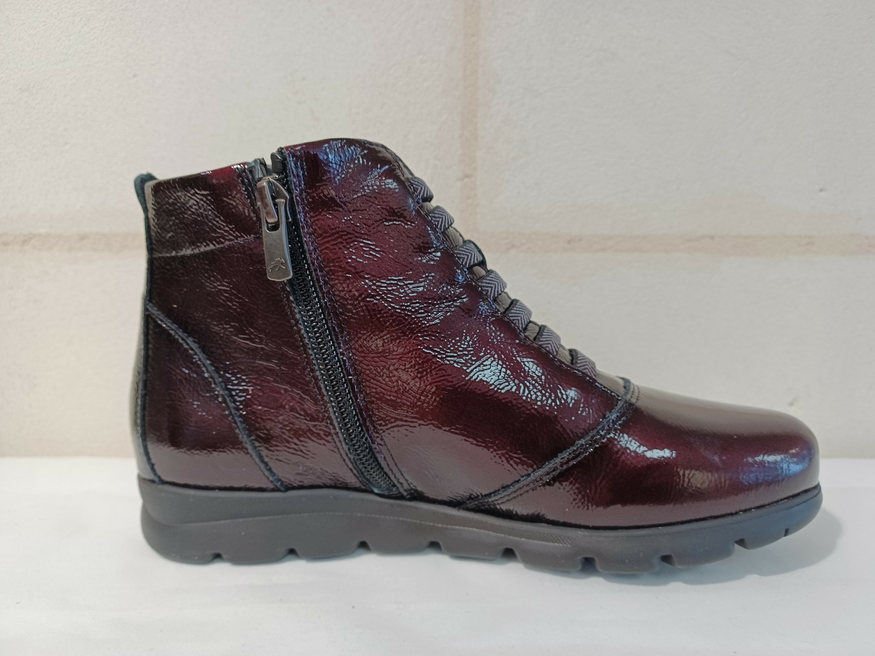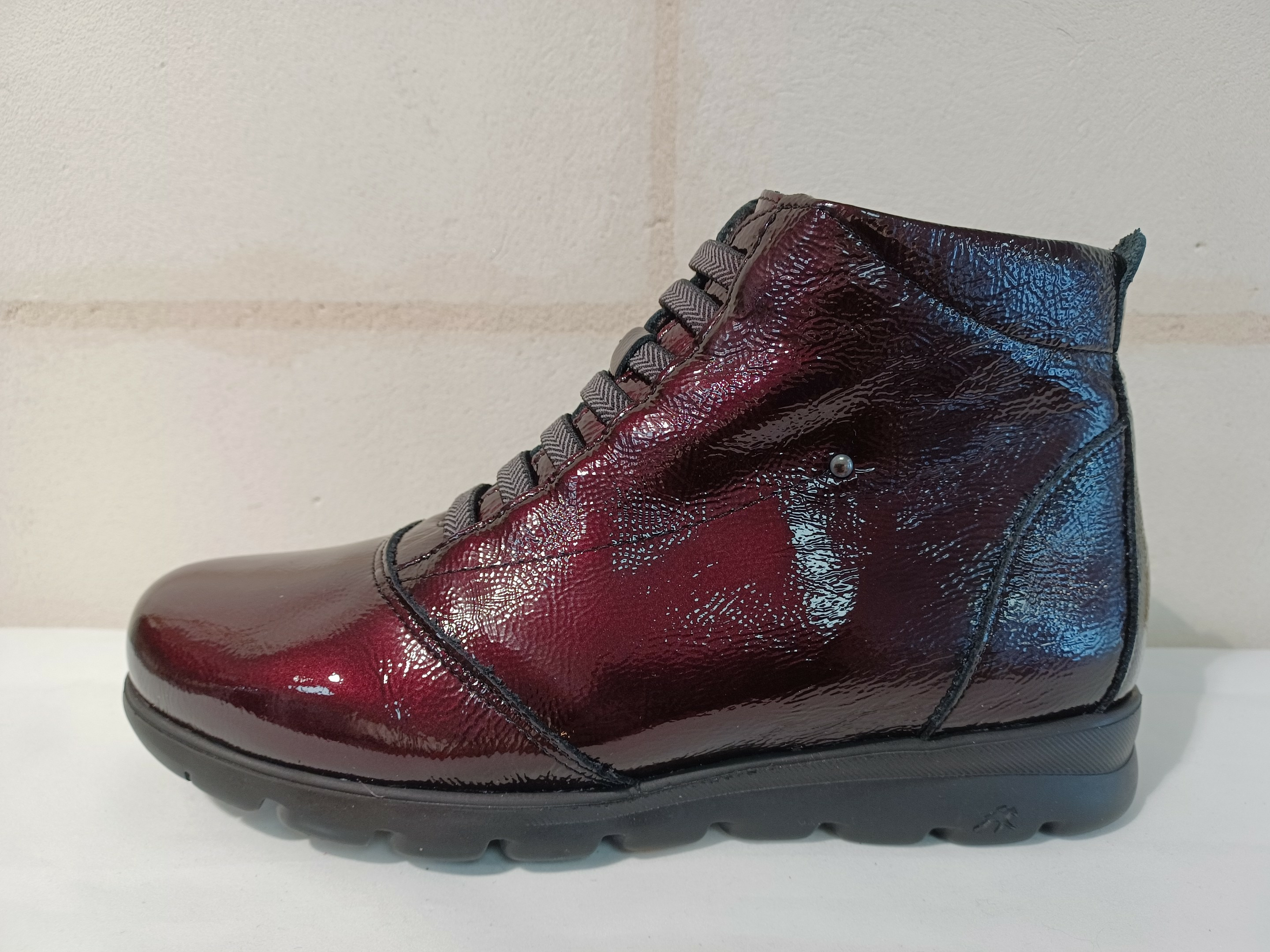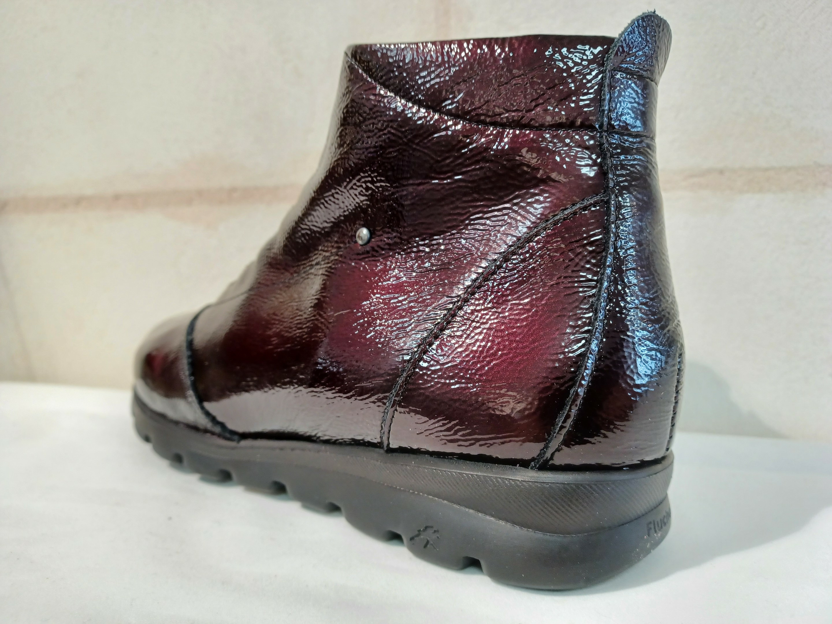 Boots en cuir vernis ultra légère de chez Fluchos.