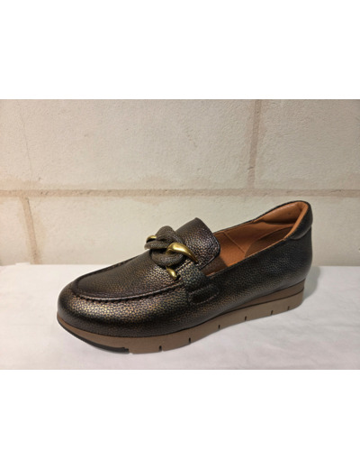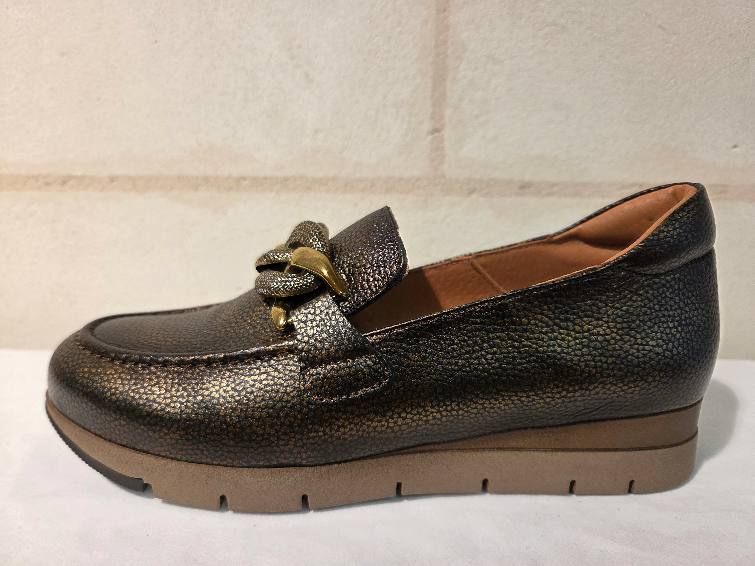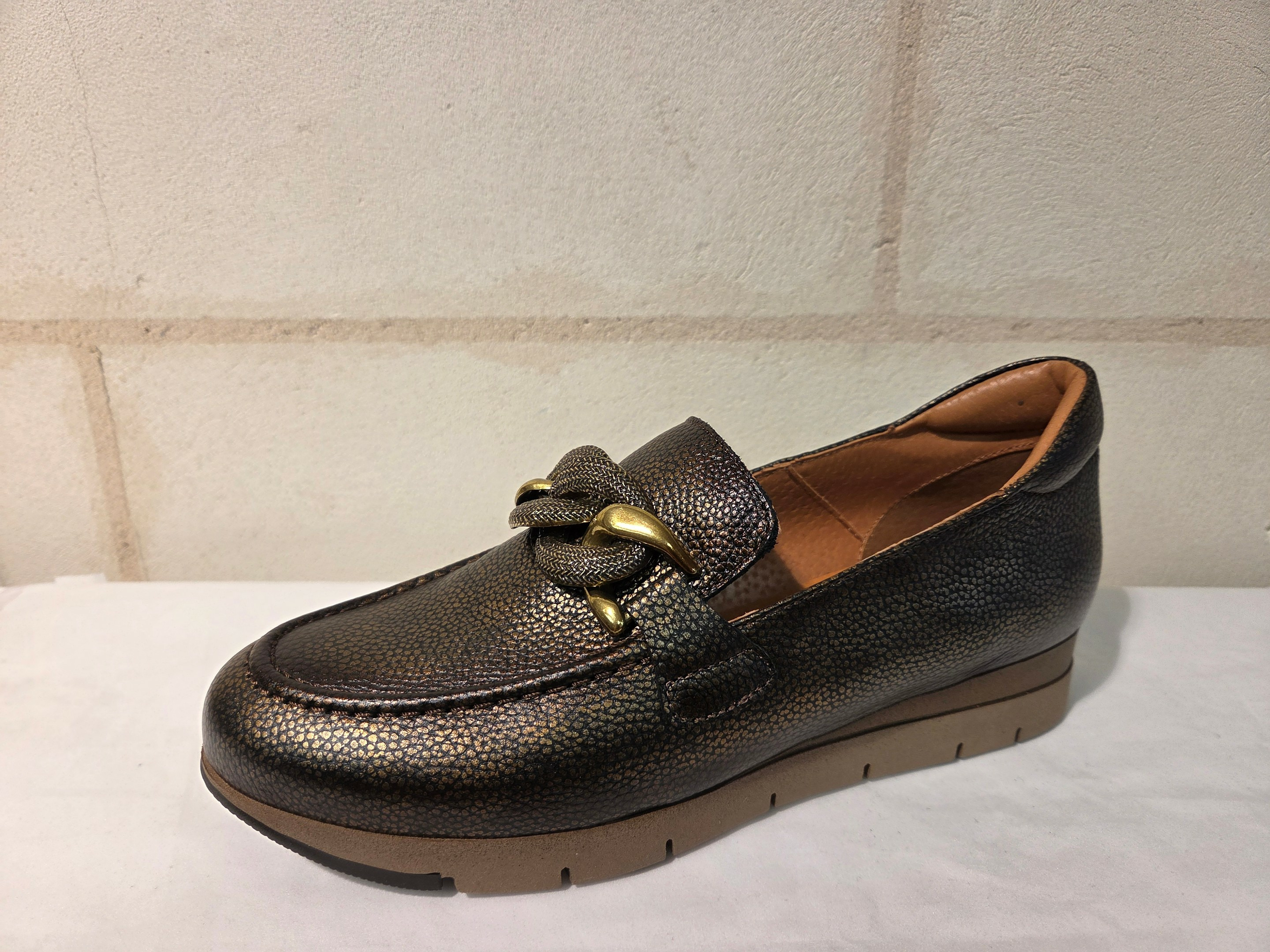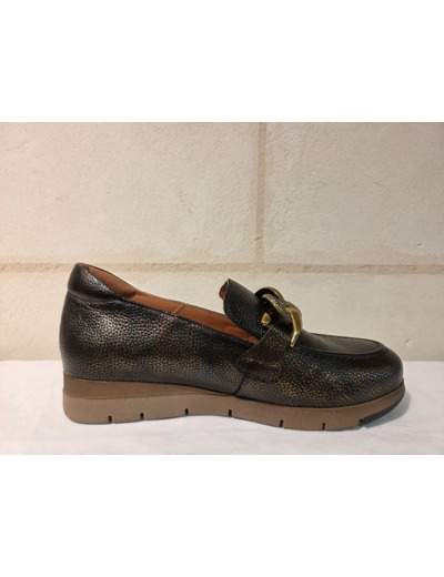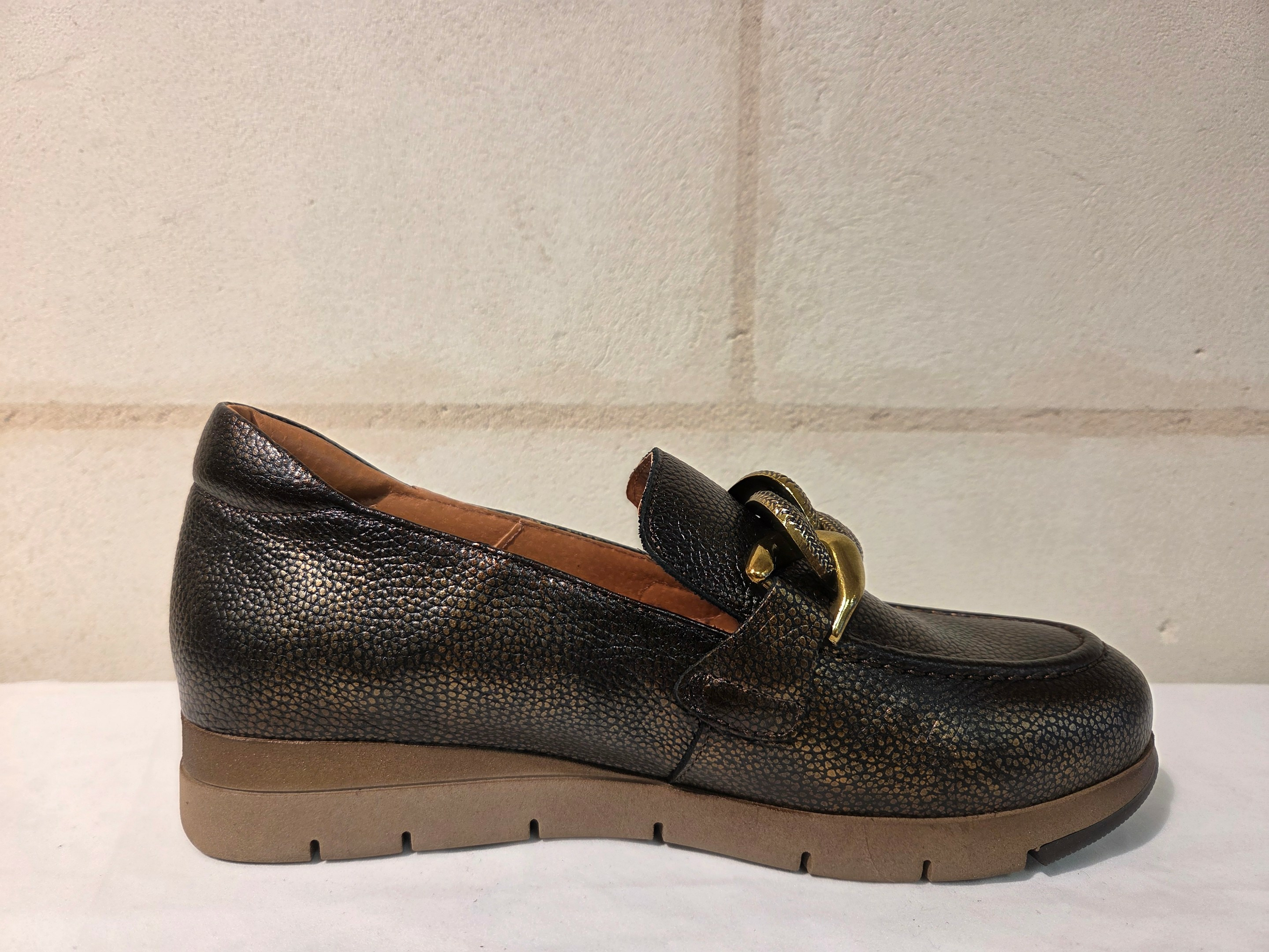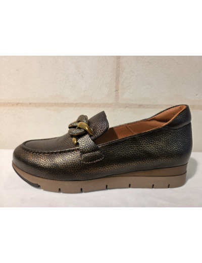 Mocassins en cuir bronze avec boucle métal doré de chez Folie's.