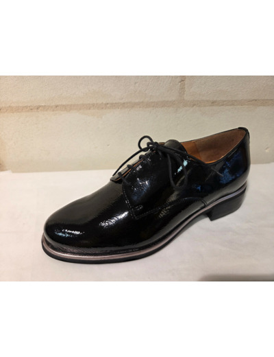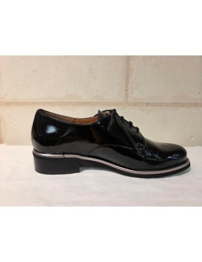 Derby en cuir vernis noir avec liseré argenté de chez Folie's.