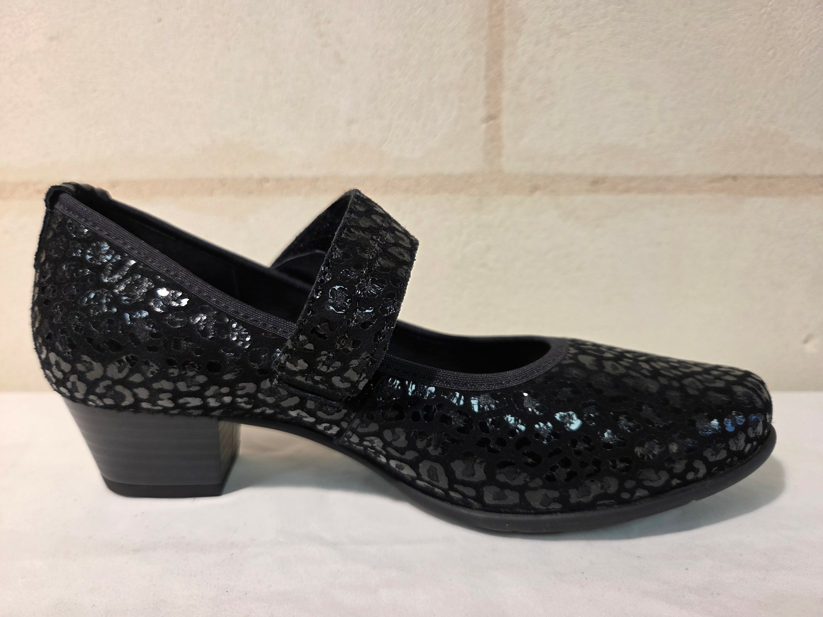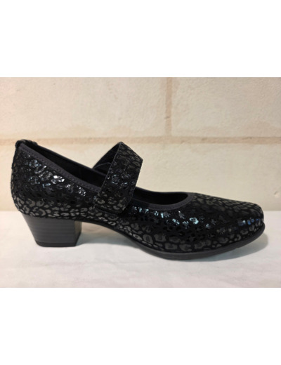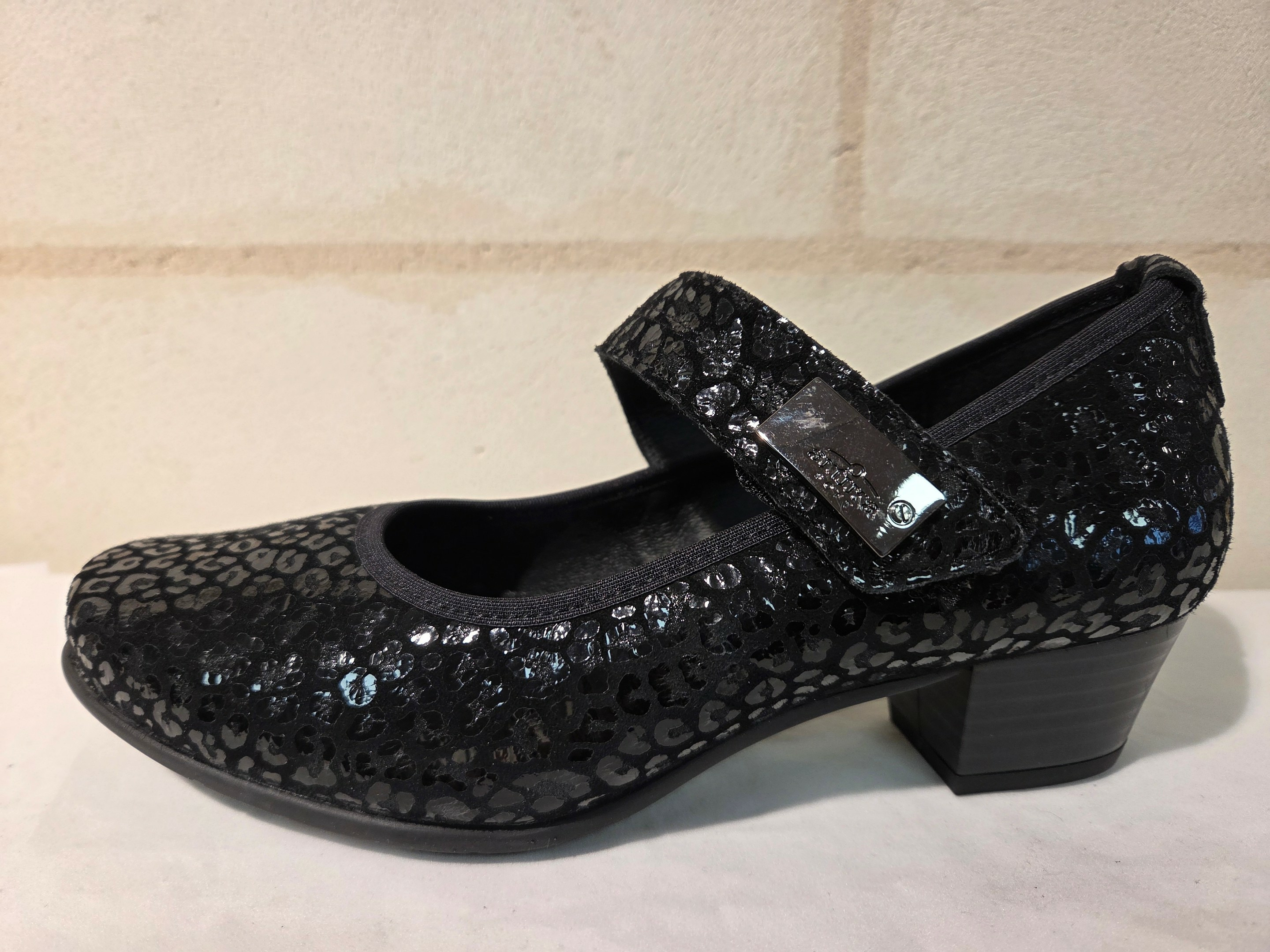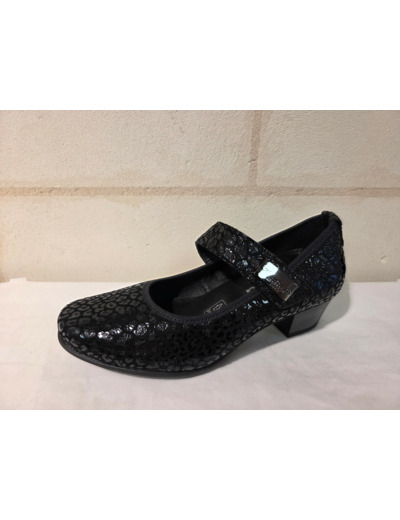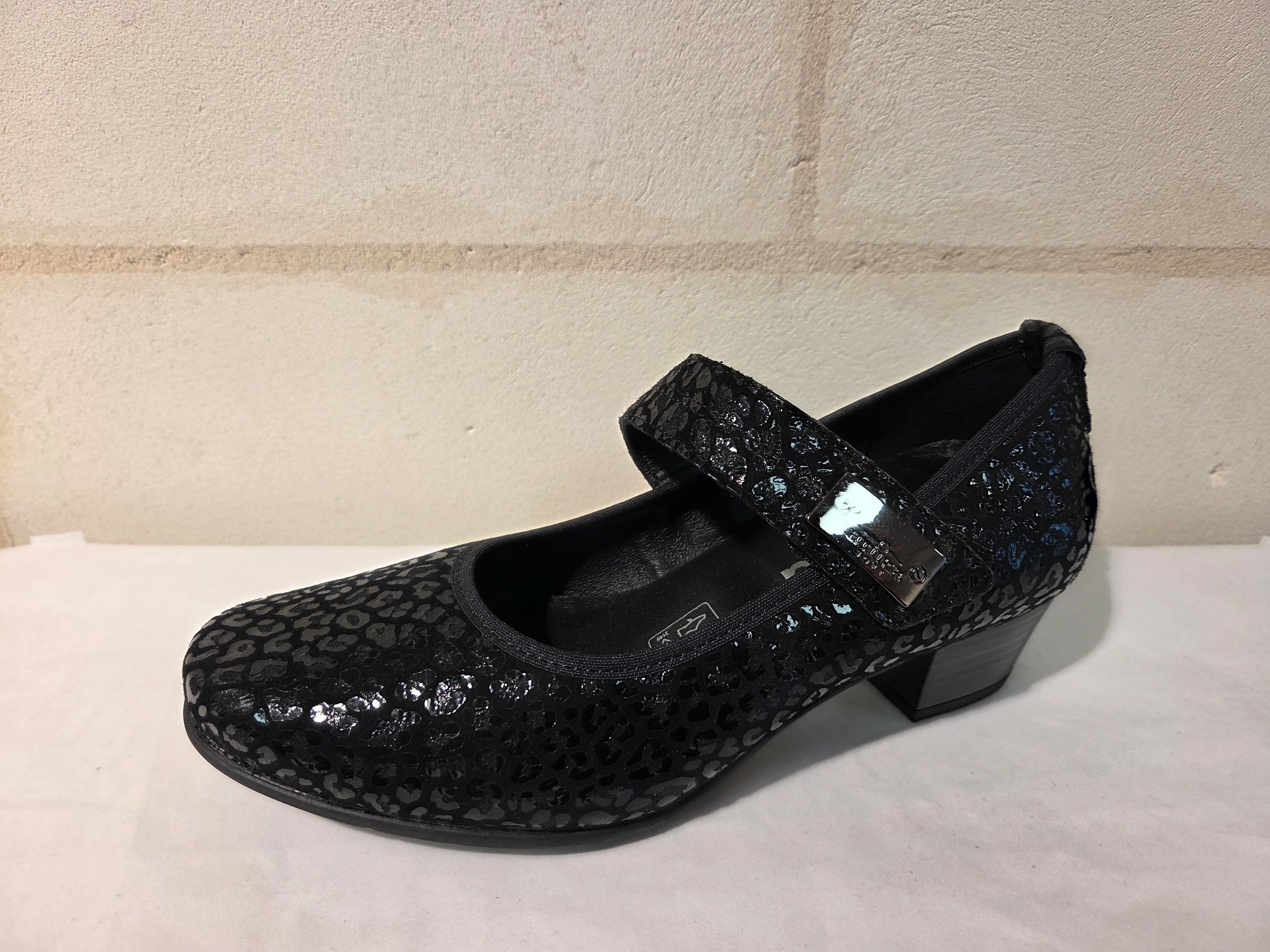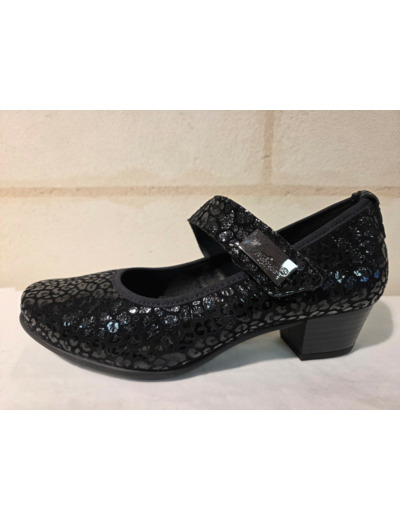 Babies à talon en cuir velours noir de chez Géo Reino.