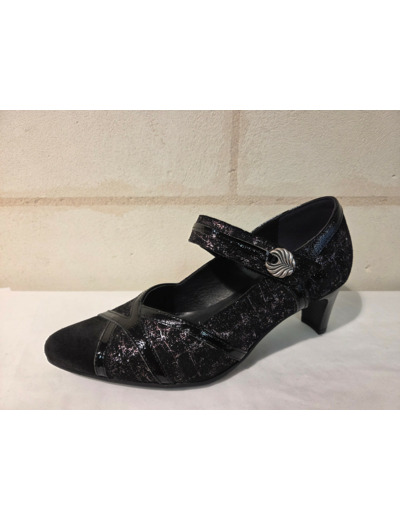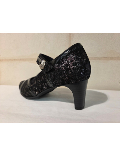 Escarpins en cuir velours noir et fantaisie bronze de chez Géo Reino.