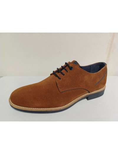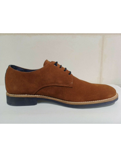 Derby en cuir velours cognac avec arrière talon cuir marine de chez Smann.