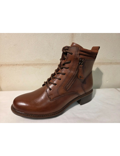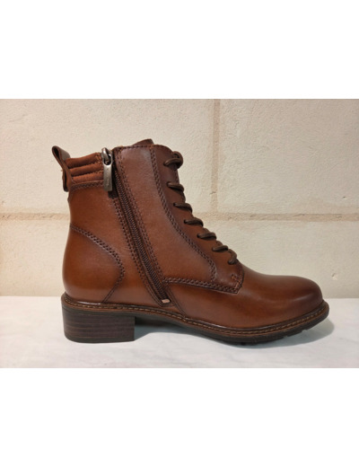 Boots lacets et zip en cuir cognac de chez Tamaris.