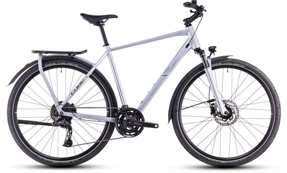 Caractéristiques Techniques du CUBE Kathmandu ProCadreAluminium Superlite, Trekking Comfort, Integrated Carrier 3.0, Double ButtedFourcheSR Suntour NCX D LO Air, 63mm, LockoutDérailleur arrièreShimano Cues RD-U6020-SGS, 10-SpeedDérailleur avantShimano Cues FD-U6010, Top-Swing, 31.8mmFreinsShimano BR-MT200/UR300, Hydr. Disc Brake, PM/FM (160/180)ChaîneKMC xGlideCassetteShimano Cues CS-LG400, 11-39TPneusSchwalbe Marathon Green, Perf, 47-622Poids16,9 kgCouleurSilverblue’n’greyTaille54| Marque | cube |