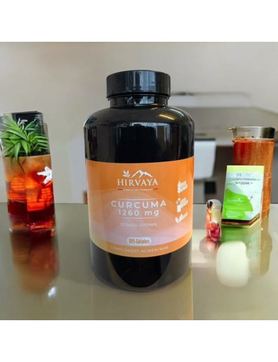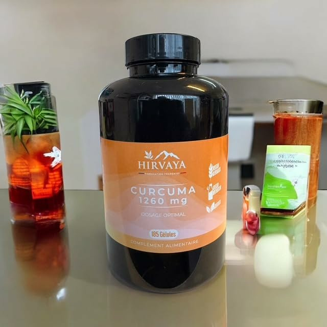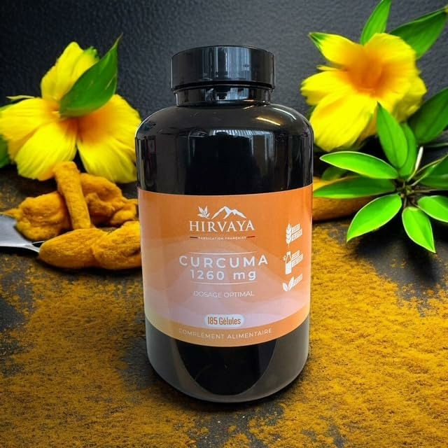 🌿 HIRVAYA Curcuma 1260 mg – 185 Gélules | Fabriqué en France 🇫🇷 ✅ Dosage Optimal | ✅ Anti-inflammatoire Naturel | ✅ 100% Végétarien Également appelé « Safran des Indes », le Curcuma est originaire de Java, mais se retrouve également en Amérique Centrale, aux Antilles et en Malaisie. C'est une plante vivace, de la même famille que le Gingembre (famille des Zingibéracées) qui peut atteindre 1m de haut et dont on utilise le rhizome. Ce dernier, de couleur jaune orangé avec un parfum terreux caractéristique est l'un des ingrédients les plus importants du curry.