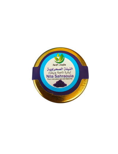 Le Nila Bleu, également appelé Nila Sahraouia, est une poudre de beauté traditionnelle issue de la culture saharienne. Cette poudre d’un bleu royal est utilisée pour uniformiser le teint et traiter les zones rugueuses telles que les coudes, genoux, pieds ou dos des mains. Sa formule hydratante naturelle rend la peau douce, satiné et aide à atténuer l’apparence des taches brunes et des marques de vieillissement.