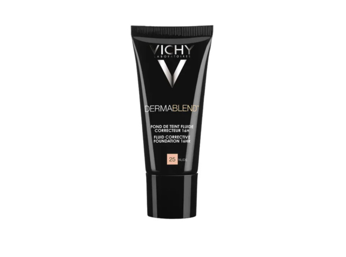 Vichy Dermablend Fond de Teint Fluide Correcteur 16H 30 ml est un fond de teint haute couvrance conçu pour les peaux normales à sèches, y compris sensibles.