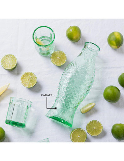 inspirée par les gouts et les couleurs des nombreux voyages de l'artiste, toutes les pièces de cette collection et principalement les carafes poisson évoquent des produits remontants aux années 30