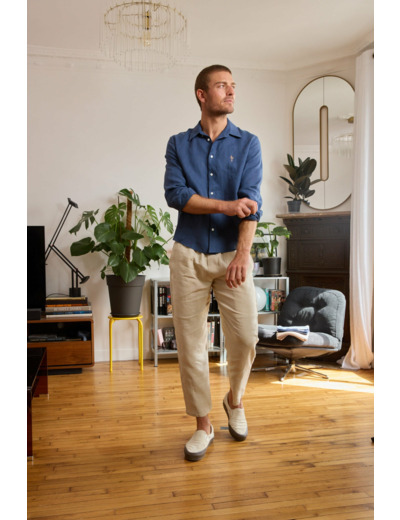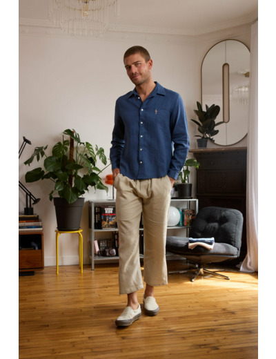 Nos chemises en lin homme existent en blanc, beige, bleu ou brique.