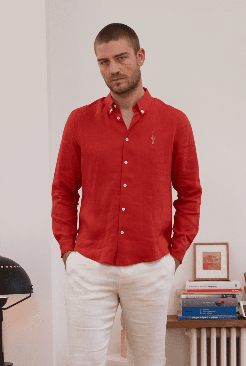 A la fois confortable et résistante, la chemise classique en lin brique pour homme sera votre plus fidèle compagnon. Vous allez l'adorer.