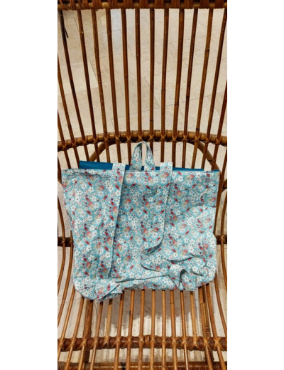 Cartable cousu main en coton et coton enduit