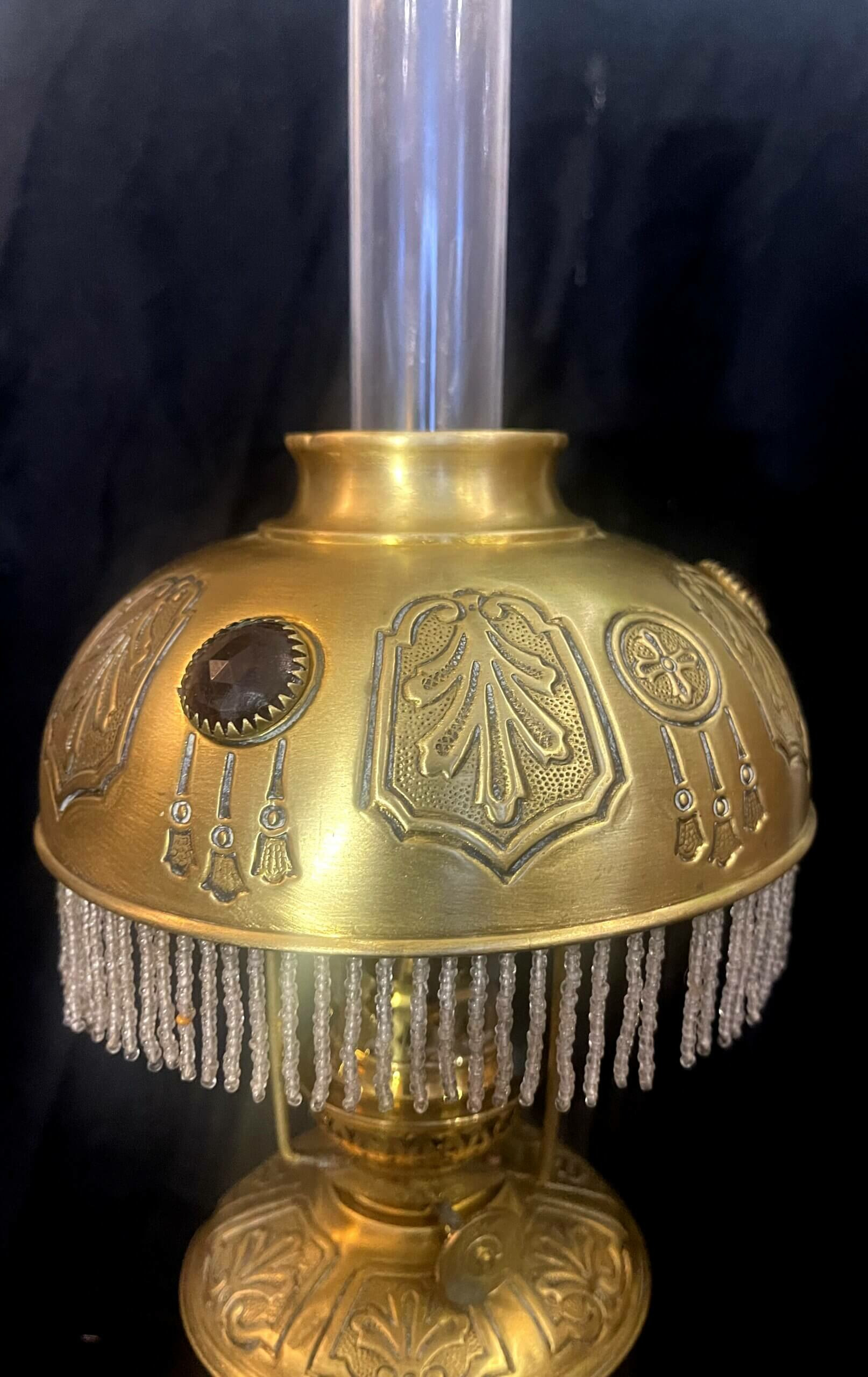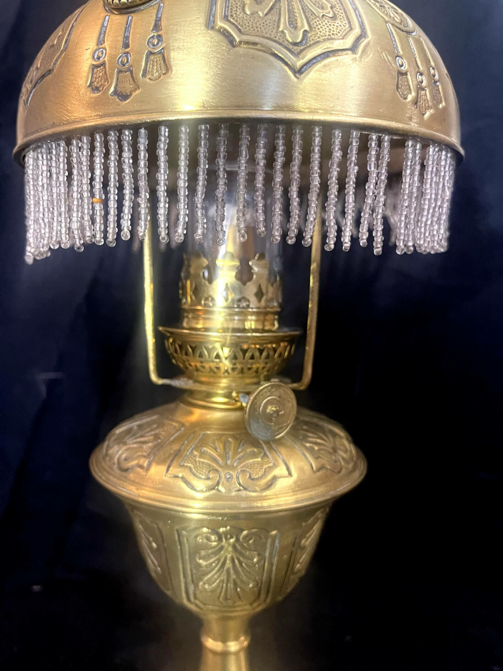 Une jolie lampe « parisienne » laiton, restaurée, et portant ses jolies pampilles blanches !