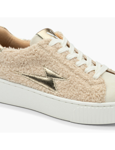 - Empiècement en forme d'éclair et patch arrière en similicuir texturé or
