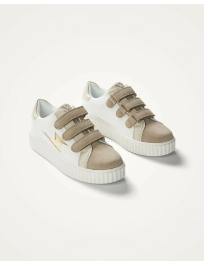 - Empeigne et fermeture à scratchs en suédine effet daim fendu beige gris