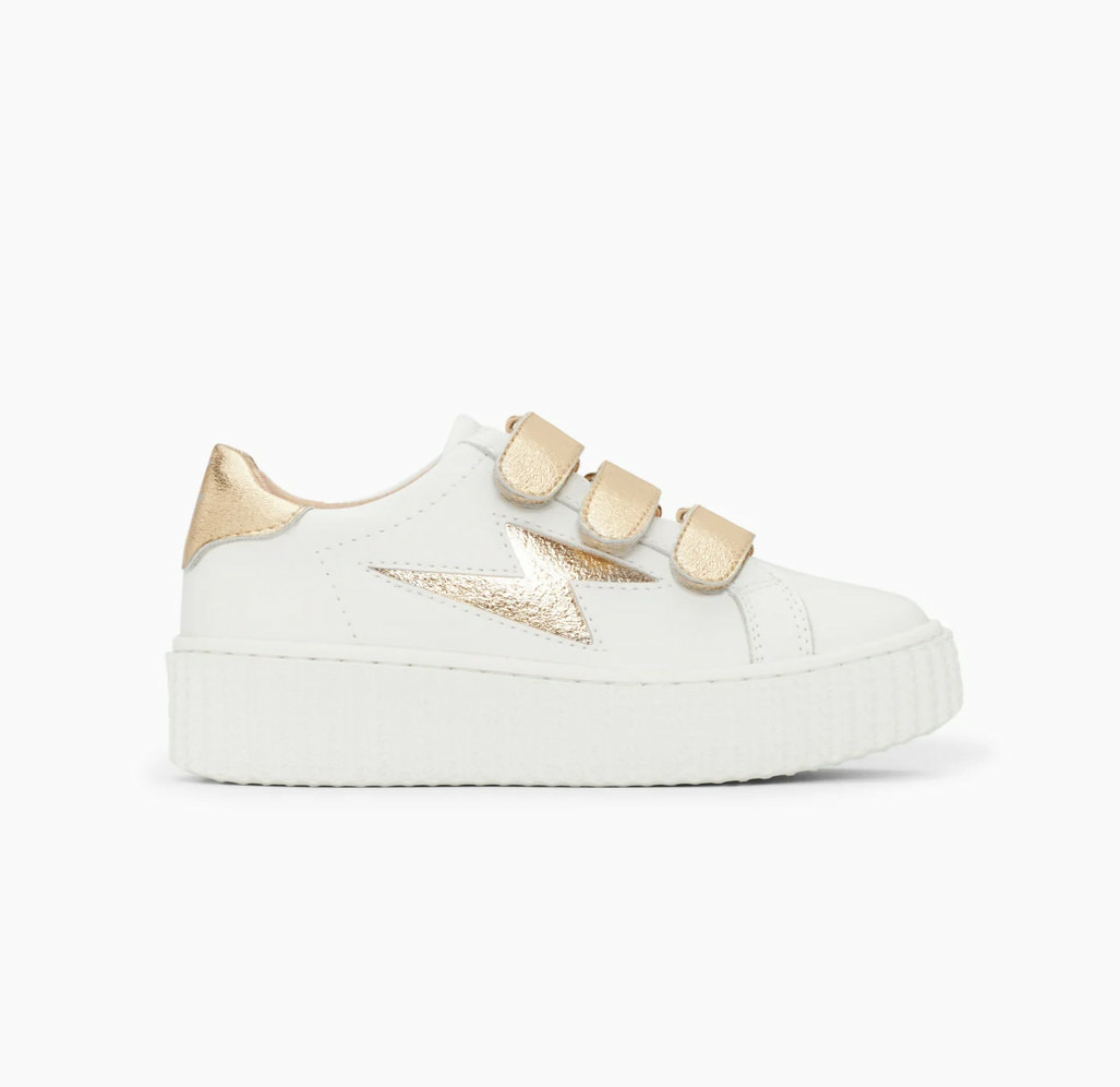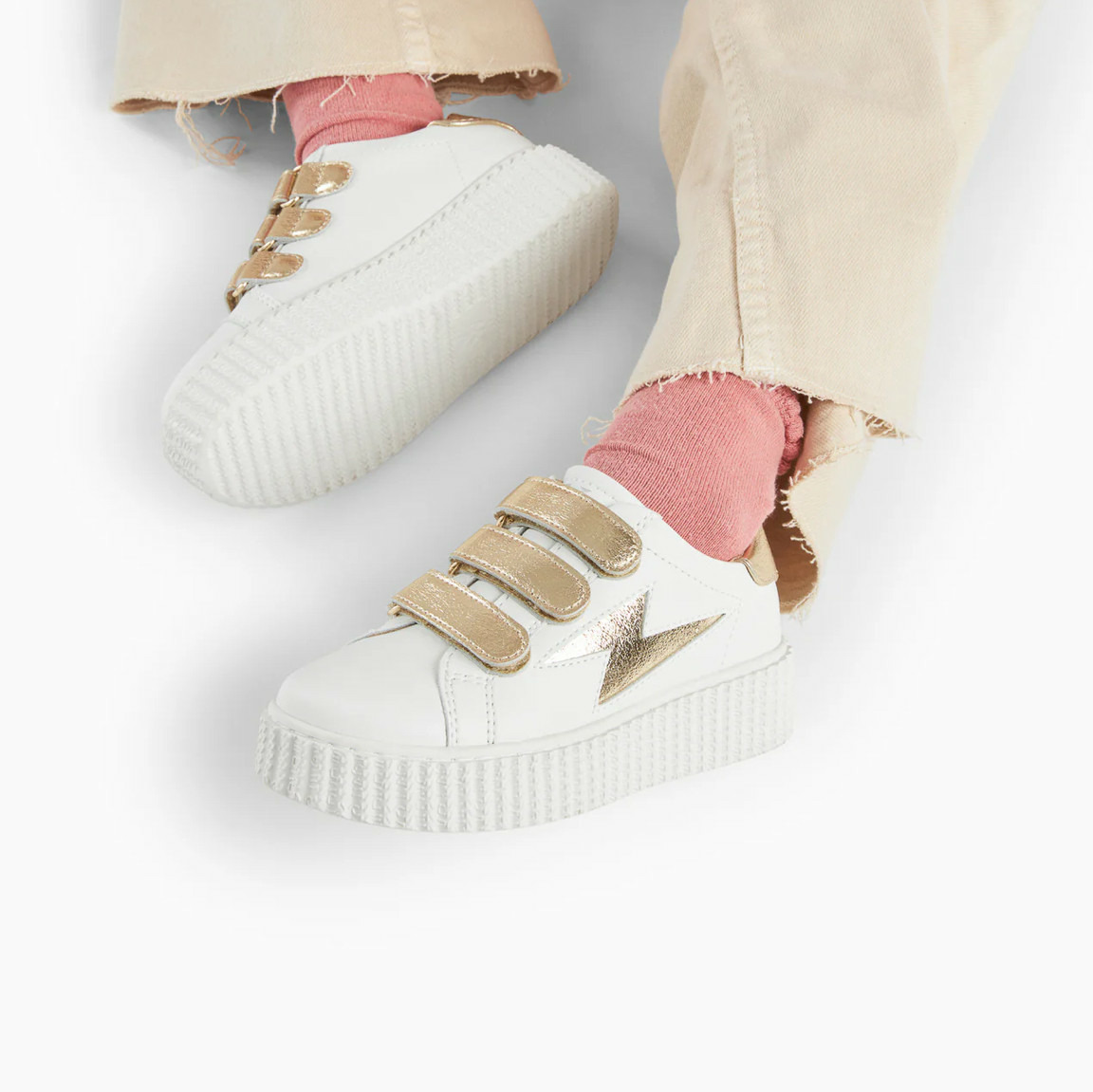 Briller de mille feux à tout âge, c'est possible avec les Mini Marilou or aux pieds ! Un éclair flamboyant, des scratchs pour les enfiler à la vitesse de la lumière, une semelle creepers pour vous accompagner au quotidien tout en confort : un modèle iconique à s'approprier.