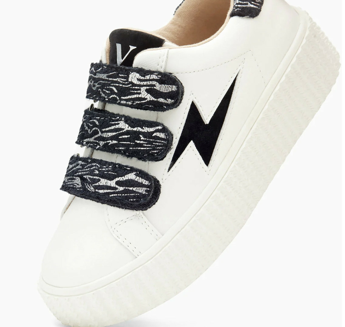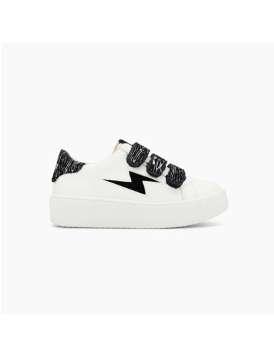 - Scratchs et patch arrière en suédine noire imprimé zèbre argent métallisé
