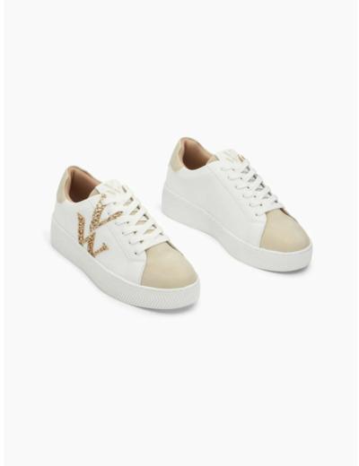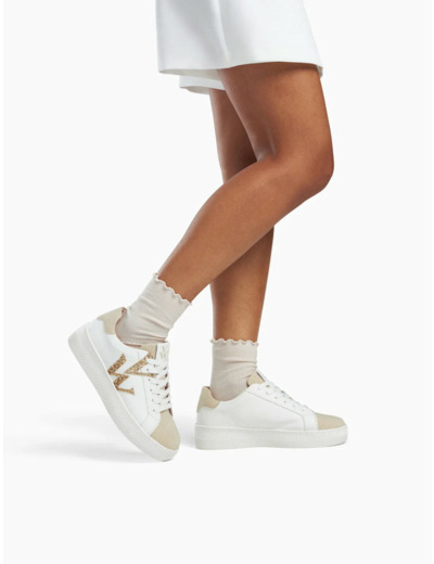 - Patch arrière et empeigne en suédine effet peau de pêche beige clair
