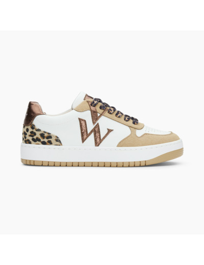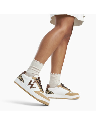 - Contrefort en toile de sergé beige clair à imprimé léopard