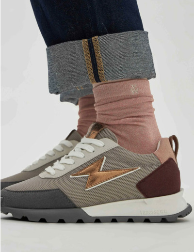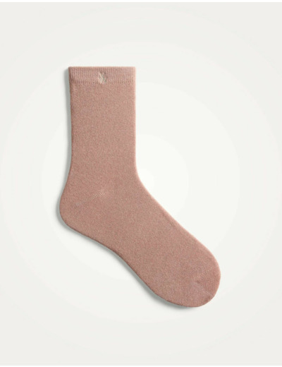 - Chaussettes montantes rose saumon à fils brillants dorés